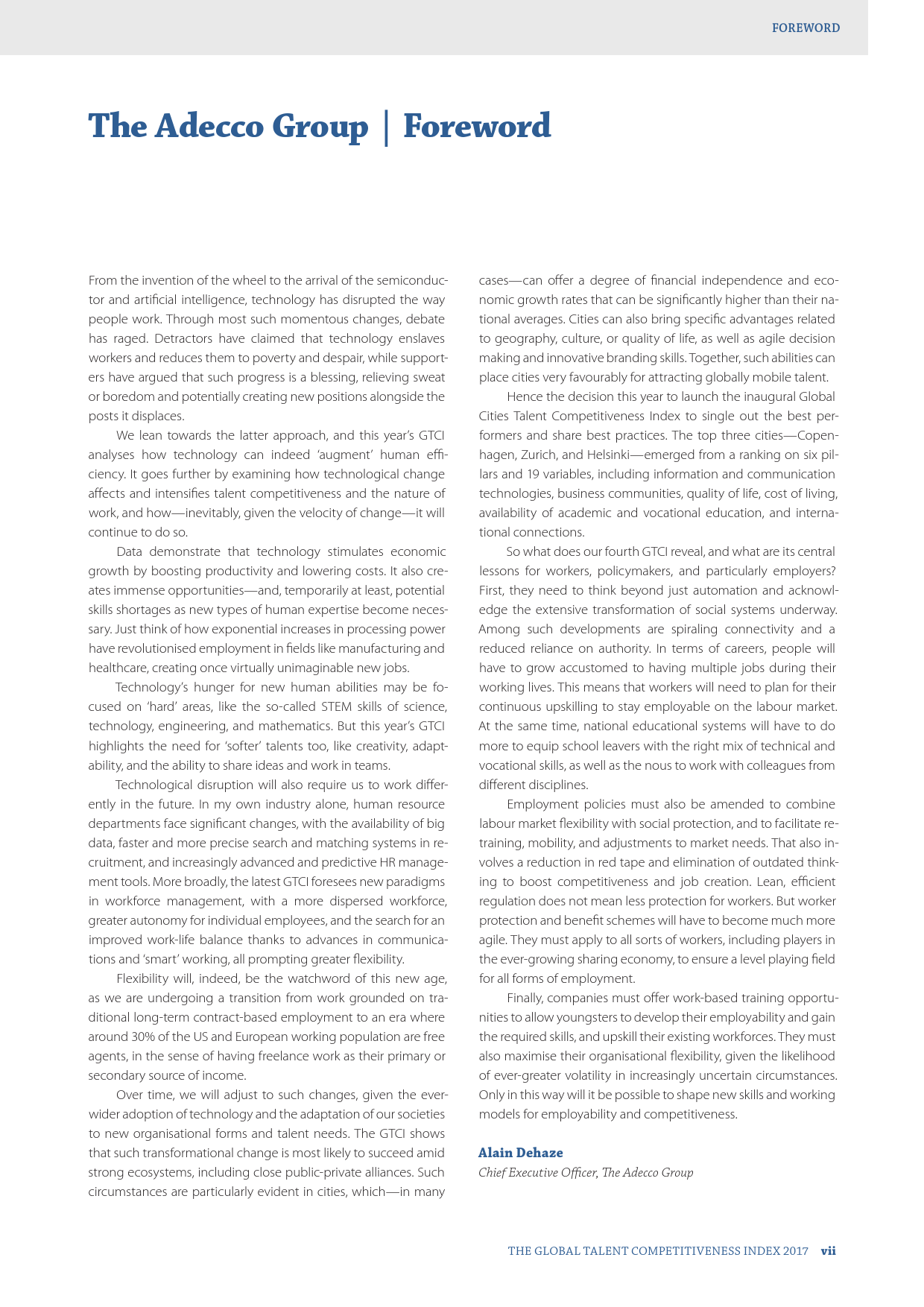 全球最大人力资源公司德科集团(Adecco)、英士国际商学院(INSEAD)和人力资本领导力研究所(HumanCapitalLeadershipInstitute)联合制作的报告,英国在全球人才竞争力指数中的位置由去年的第七跃升为第三。