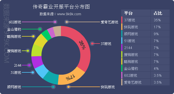 点评:《传奇霸业》本周开服总数较上周增涨4.7%,其在快玩游戏开服占比上升至17%。新增分布占比平台爱奇艺游戏,开服频率1服/天。