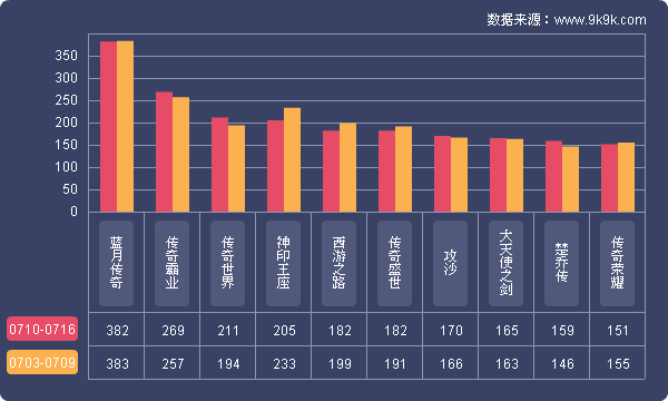 本周榜单游戏排名较上周变化不大,其中《传奇世界》继续保持良好的发展态势,开服总数较上周增涨8.8%,榜单排名上升至第三。热游《楚乔传》、《传奇荣耀》排名发生交替。其余入榜游戏开服趋势均保持稳定。
