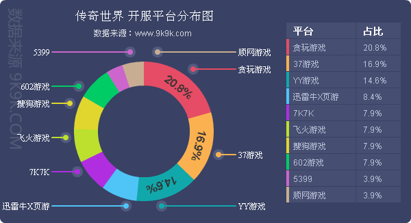 点评:本周《传奇世界》开服趋势继续保持涨势,其在37游戏开服占比上升4.9%,日均开服频率4服/天。新增分布占比平台5399。