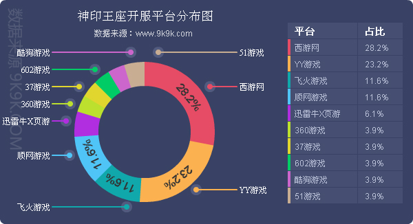 点评:本周《神印王座》开服总数较上周减少12%,但整体开服趋势仍保持稳定。各平台开服分布情况变化不大。