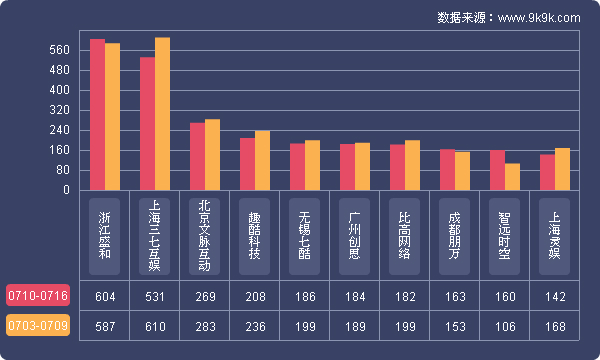 点评:本周网页游戏研发商开服排行前三:浙江盛和、上海三七互娱、北京文脉互动。智远时空本周重返榜单,排名第九,旗下最新热游《鬼吹灯之牧野诡事》目前在各平台发展形势良好。本周榜单研发商共开服2629组,占一线平台开服总数47.8%,该占比较上周减少2%;其中开服前三研发商共开服1404组,占榜单开服总数53.4%。