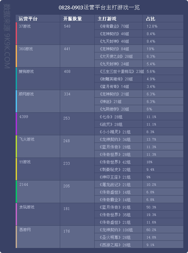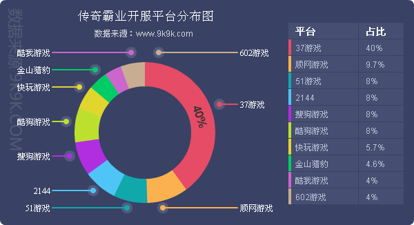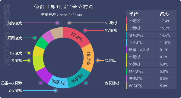 点评:《传奇霸业》本周开服稳定,各个平台开服占比情况未发生明显变化。新增分布占比平台酷我游戏。