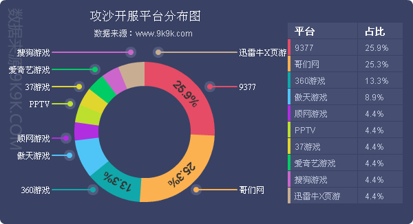 点评:本周《攻沙》整体开服趋势稳定,其在9377、哥们网开服占比分别为25.9%、25.3%。;另有多家一线平台开服频率保持在1服/天。