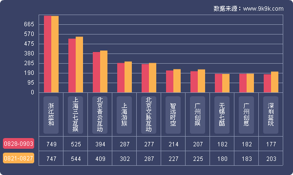 点评:本周网页游戏研发商开服排行前三:浙江盛和、上海三七互娱、北京青云互动;本周榜单研发商共开服3194组,占一线平台开服总数57.8%,该占比较上周减少1.3%;其中开服前三研发商共开服1668组,占榜单开服总数52.2%。