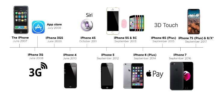 2017年7月,全球有7.3亿部iPhone正在使用中,占全球人口的1/10。过去十年间,苹果平均每天销售32.3万部iPhone。