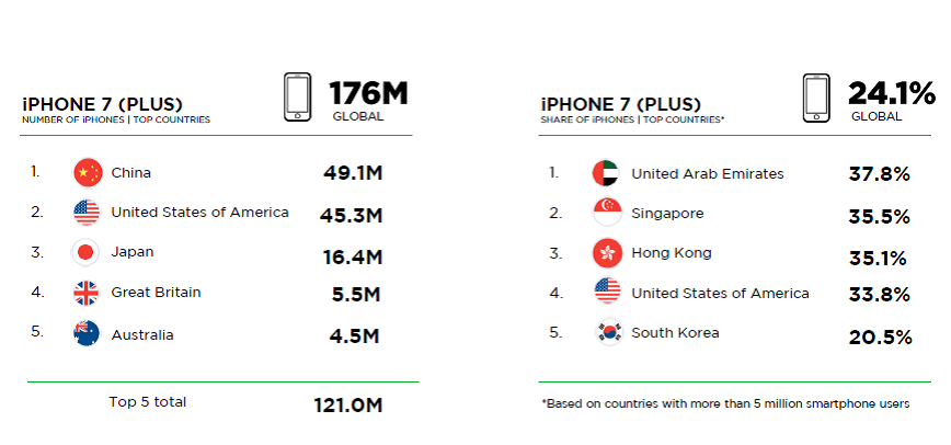 目前,全球有1.76亿部iPhone 7/7 Plus正在使用中。中国用户(4910万部)的贡献仍然是最大的。