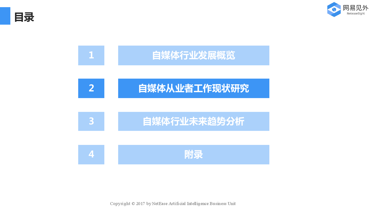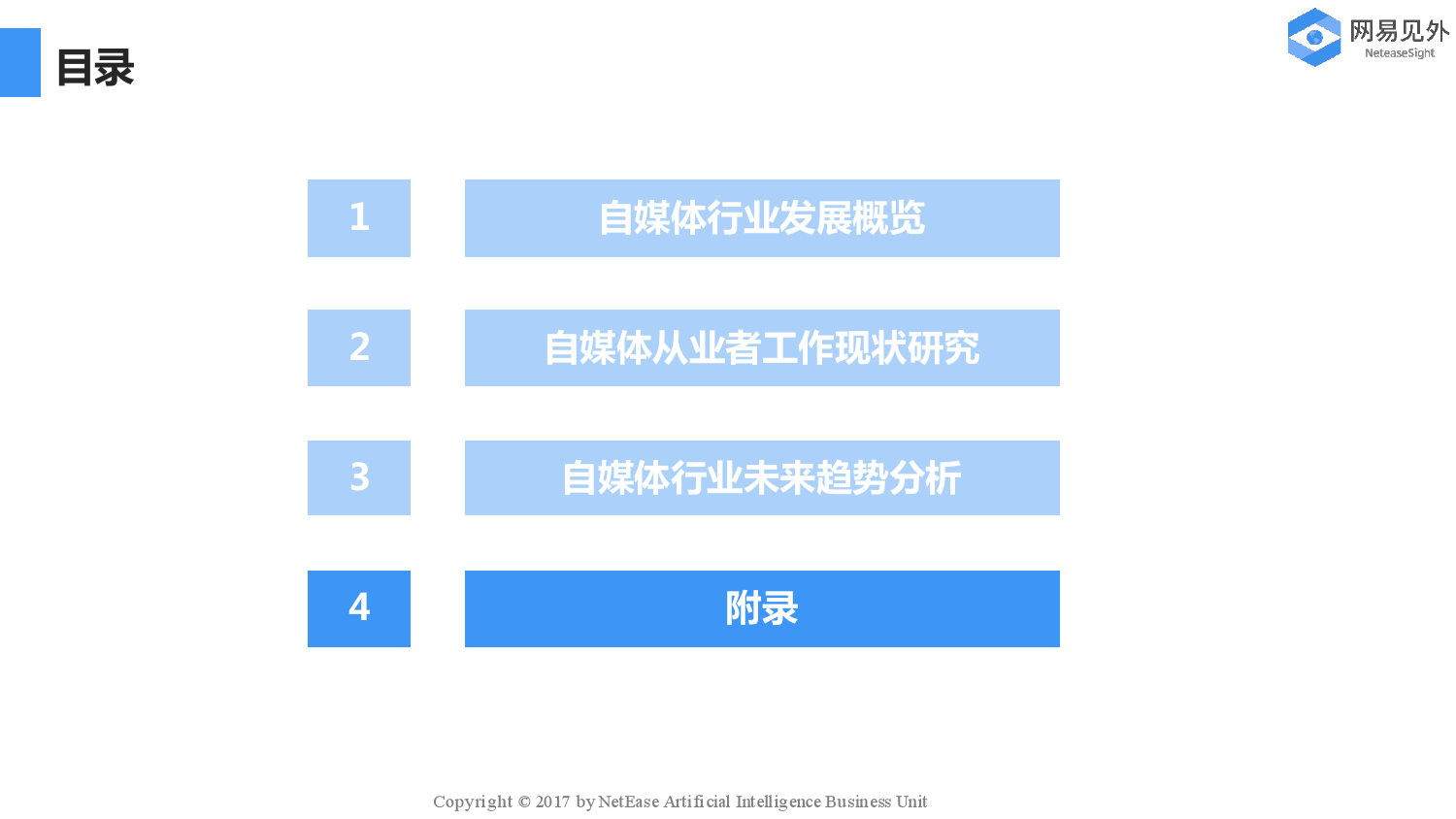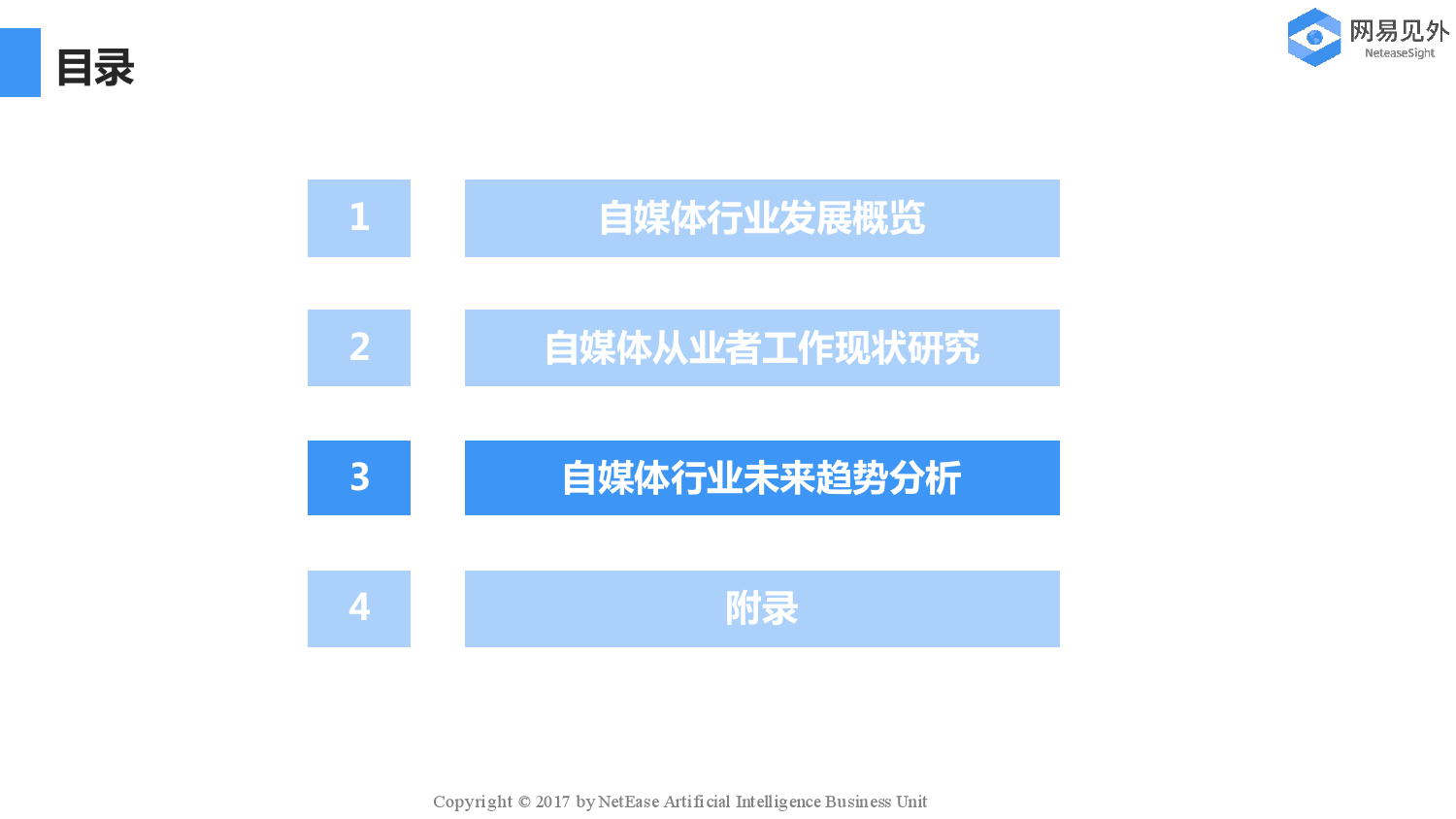 网易见外:自媒体行业现状研究与未来趋势分析报告 获取PDF版微信扫描下面二维码 199IT知识星球(原小密圈)已有1400+资深用户、3000+份最新最好的行业文档,欢迎您的加入! 更多阅读:图解生鲜电子商务行业现状–信息图TopKlout克劳锐:2017自媒体知识付费行业研究报告企鹅智酷:2017自媒体趋势报告自媒体和自媒体读者进化史自媒体成功率低 传统媒体依然很强大企鹅智酷:中国自媒体内容创业数据及趋势报告企鹅智酷:用社交应用看新闻中年人胜过年轻人《自媒体人生存状态》调查报告:超60%月营收不足万元O2O下的自媒体社会化营销消费者品牌报告:寻找真相Demand Gen :制造商将数字转换扩展到销售和营销报告K-12报告:2017-2018全球数字学习现状Salesforce:2021年联网消费者报告自媒体再惹祸 被造谣筹款资金进入公司资金池水滴筹声明已报案七麦数据:2018短视频App行业分析报告