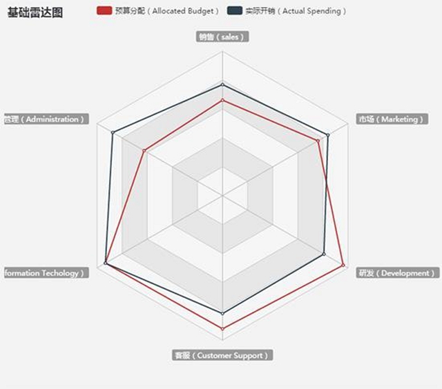 在广告投放中,以流量、曝光、点击、竞价、成本为维度,做雷达图(radar)对广告投放进行监控时,按照正常思维,这个图形应该呈现同心环状分布,即高流量带来高曝光和高点击,同时,广告投放在该平台完成的竞价次数和成本也是最多的,因此广告的总投放成本最高。