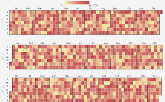 与展示相比,分析和预测在数据可视化中更为重要。广告投放完成后,会产生大量的投放数据,包括投放时间、投放效果等等。通过日历图(calendar),绘制不同时间、不同品牌的投放需求热度,进而预测投放趋势,就能有的放矢,为客户在下一轮的广告投放中占得先机。