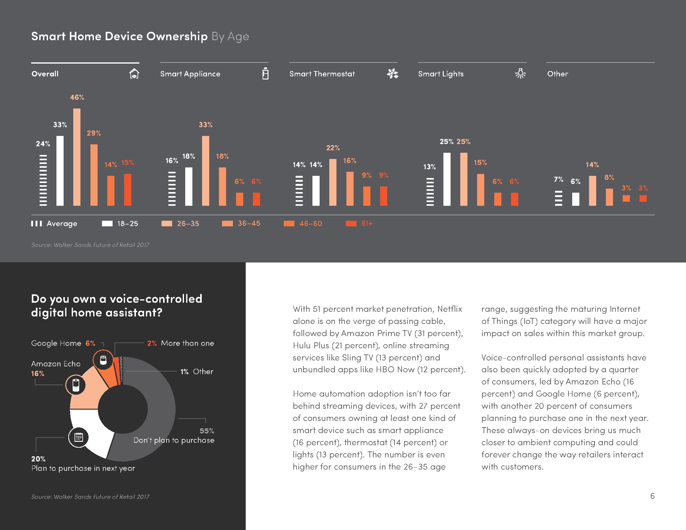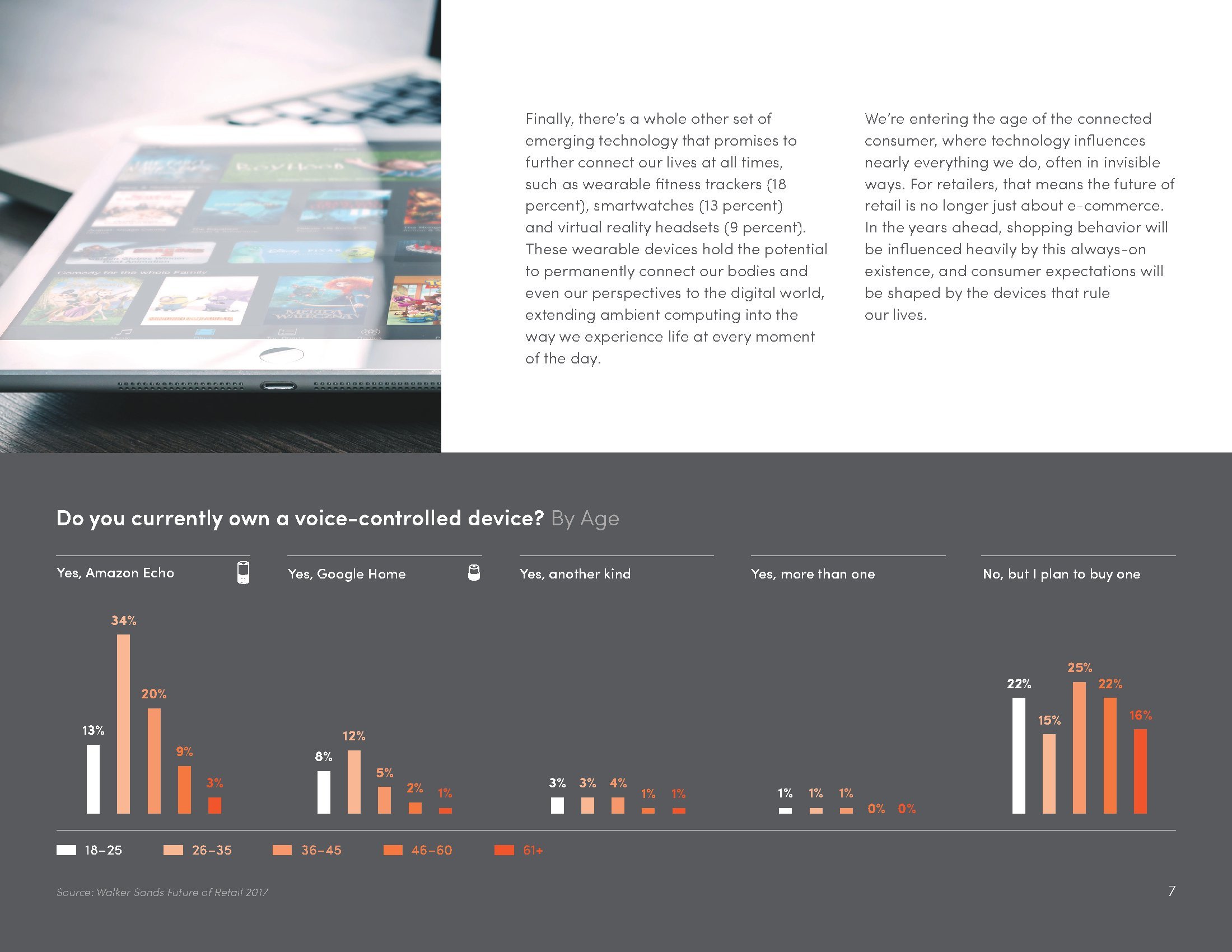 近1/4的消费者拥有像亚马逊Echo(16%)或Google Home(6%)这样的语音助手设备。还有20%的消费者计划明年购买类似设备。