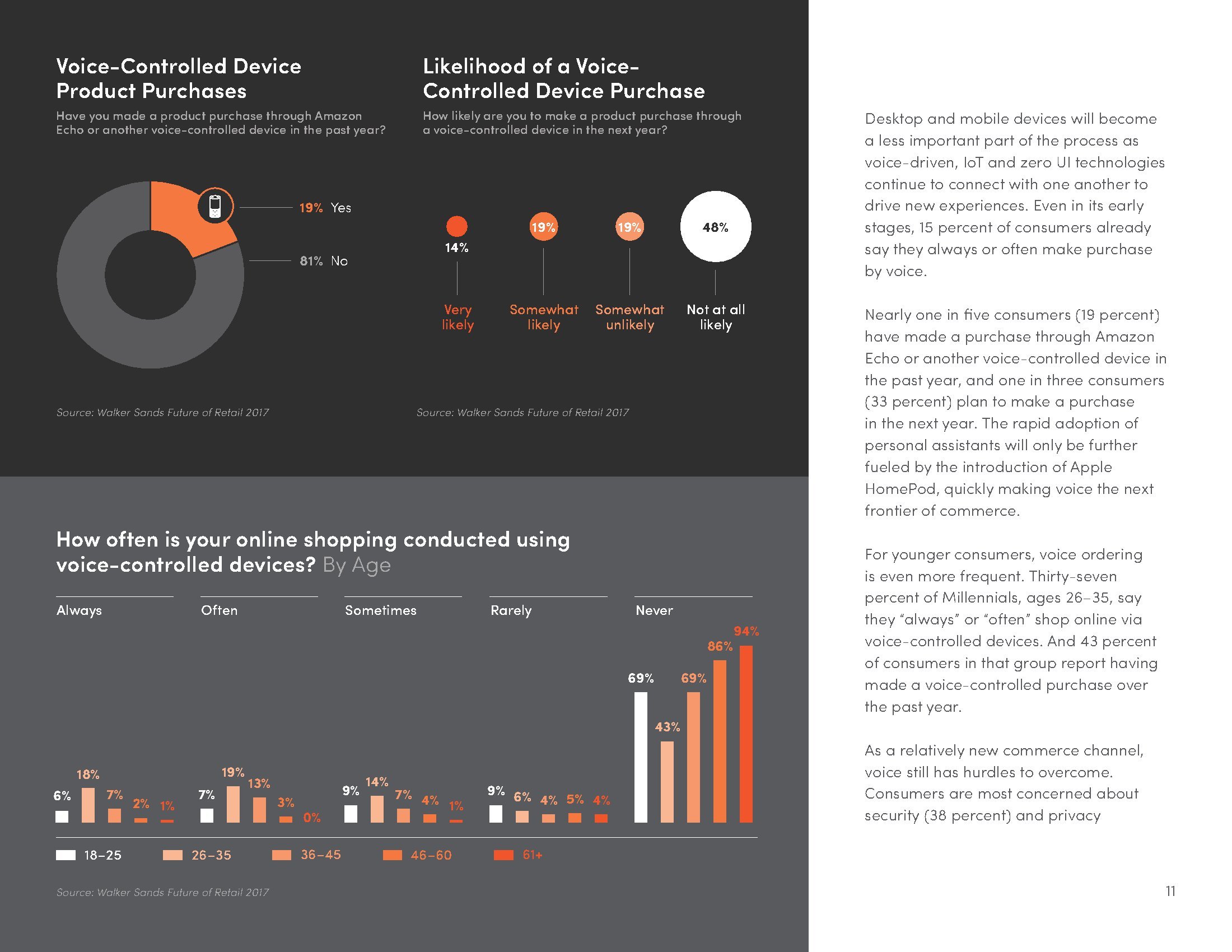 近1/5的消费者使用亚马逊Echo或其他语音助手购买过商品(19%),还有1/3的消费者计划明年使用这些设备购物(33%)。