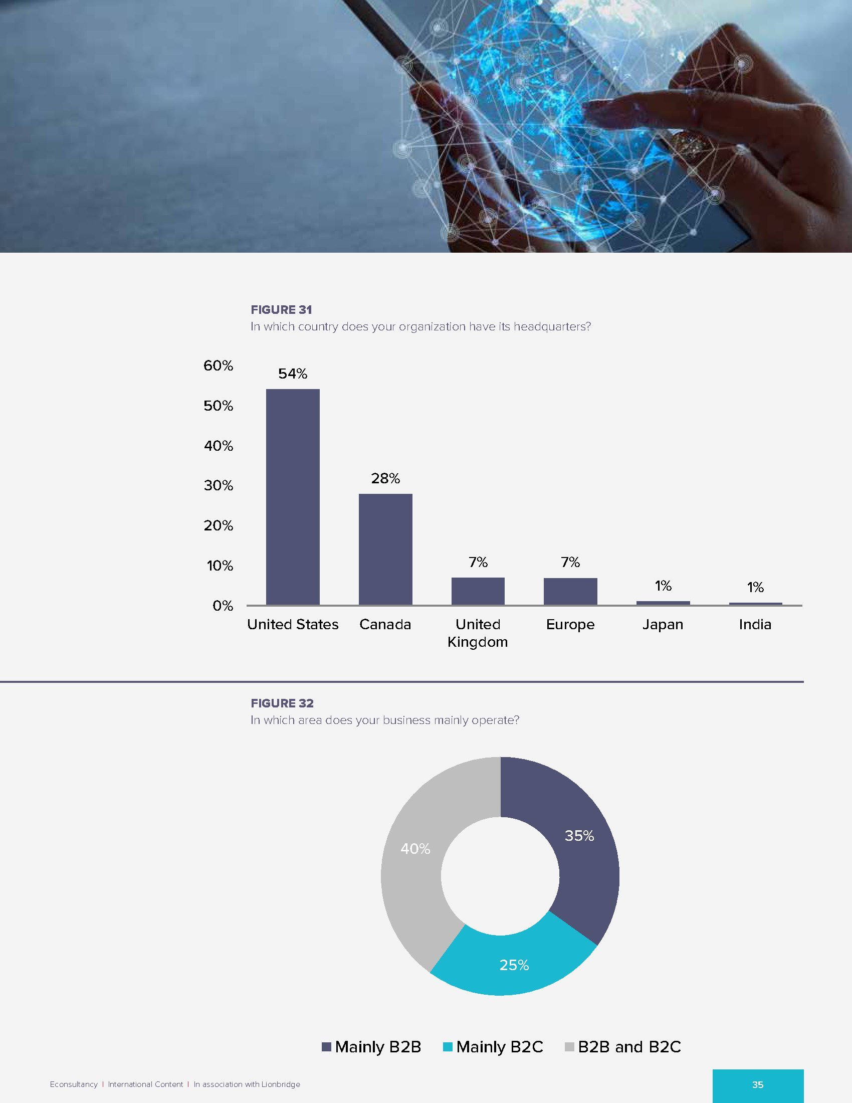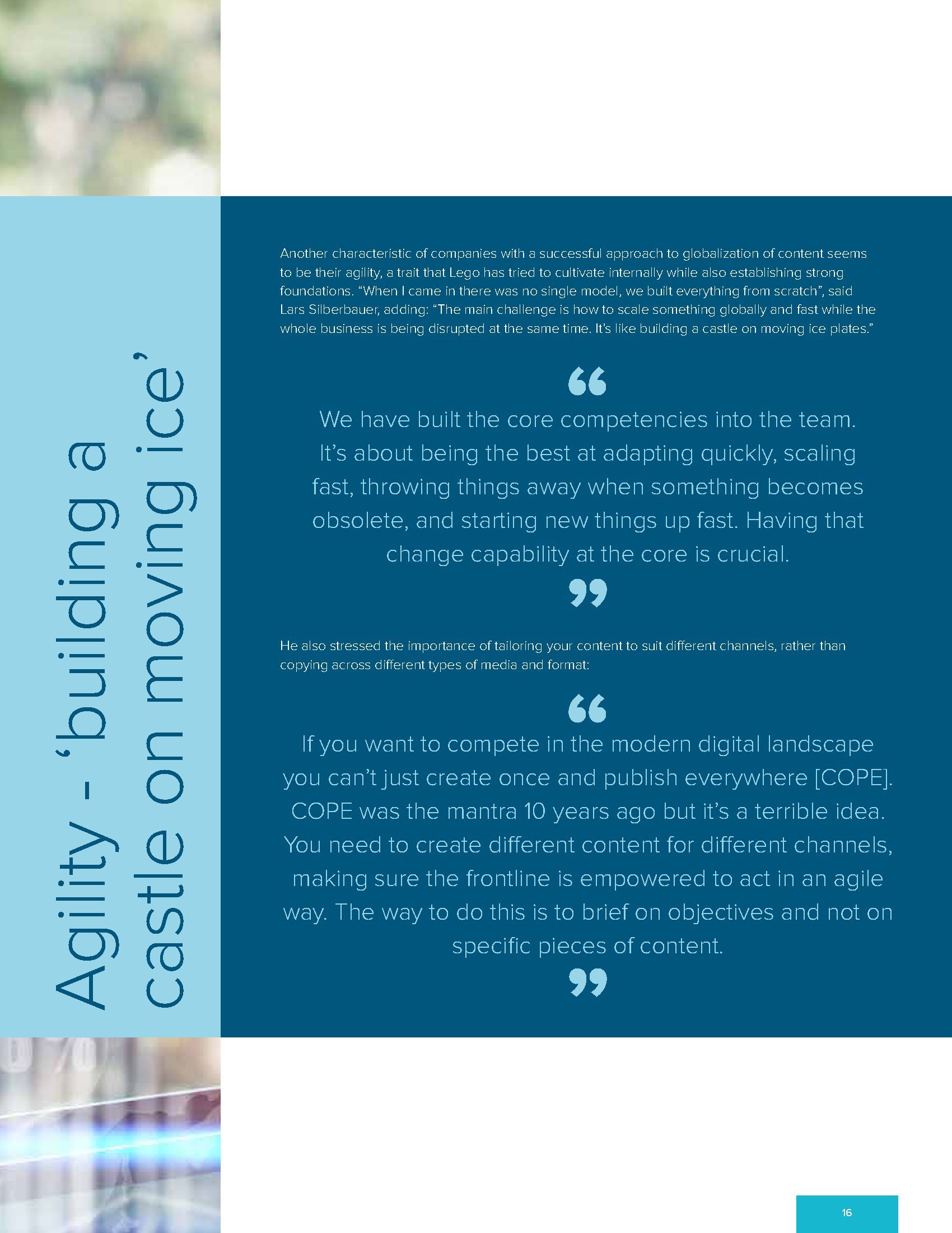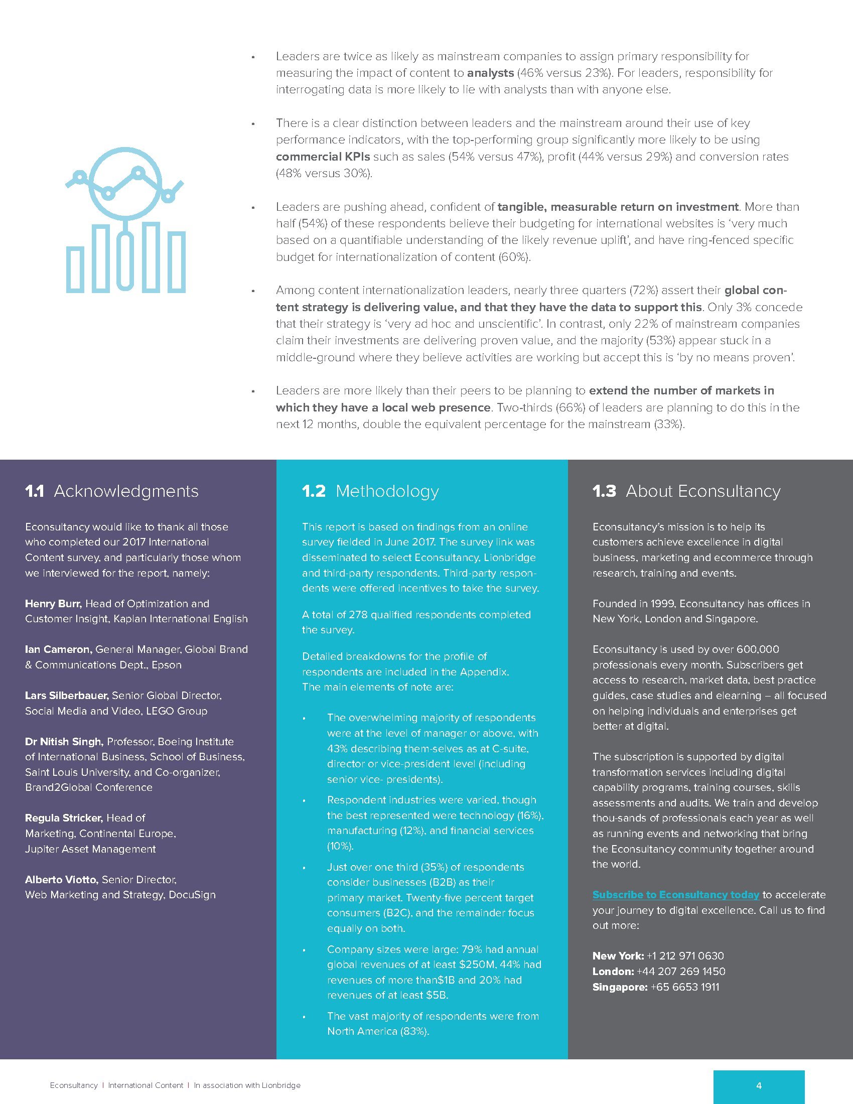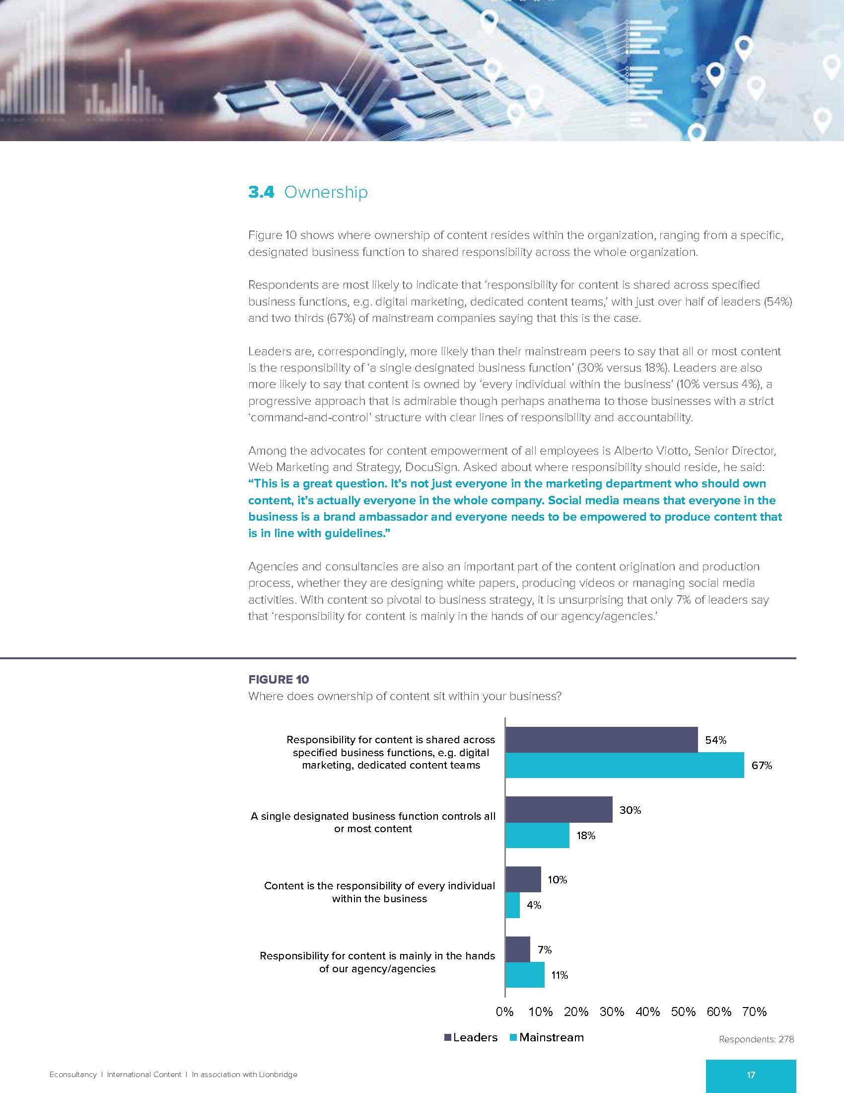 从整体来看,只有58%的企业能集中控制全球内容,而没有地方自治的企业仅占10%。国际化和地方内容都有完善框架的领袖企业比例是平均水平的两倍(43% vs. 22%)。