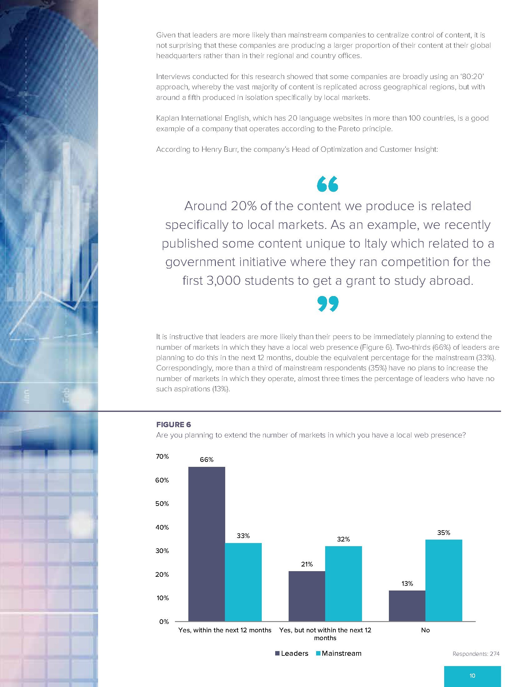 66%的领袖企业正在计划未来12个月扩大市场数量,如果那里有本地化网站。这个数字也是平均值(33%)的两倍。