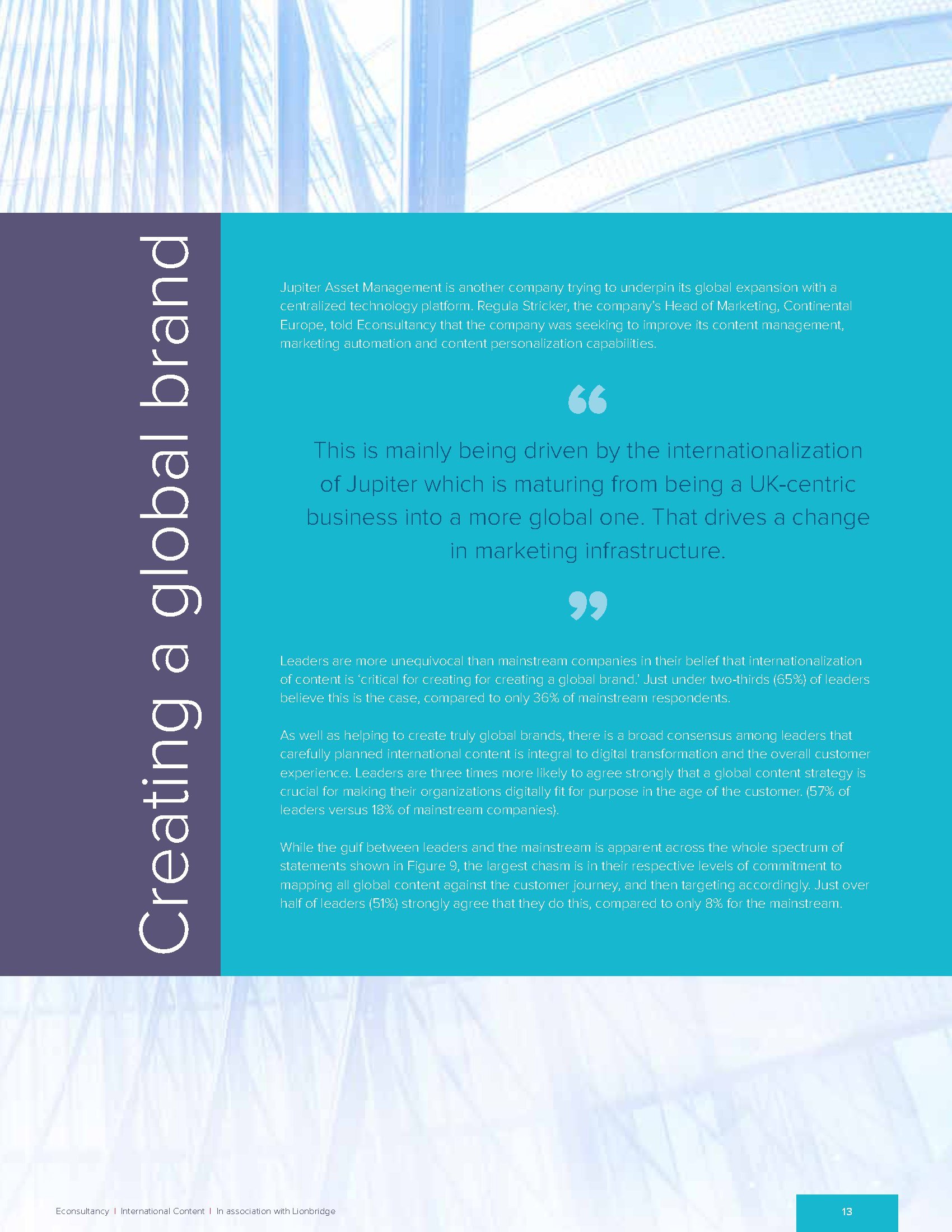 65%的领袖企业认为内容国际化对建立全球品牌至关重要;而在所有企业中,只有36%这么认为。