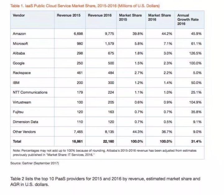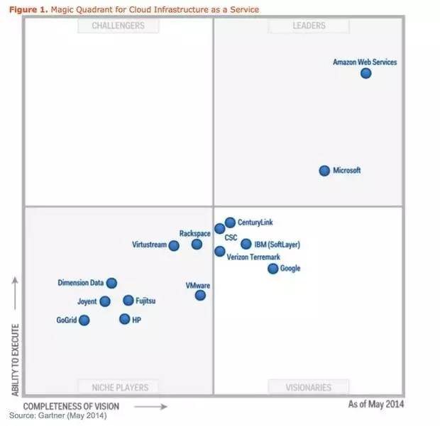 另外值得关注的玩家是阿里云,它跻身于IaaS领域余下的佼佼者行列。Gartner认为,阿里云是中国云市场的一股主力军,它目前的解决方案表明了在将来大有潜力。然而在中国之外的市场,阿里云取得的成绩却比较有限。