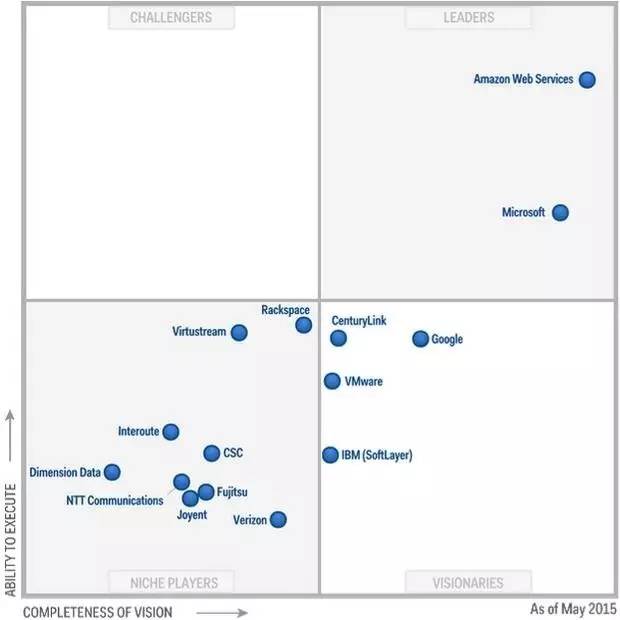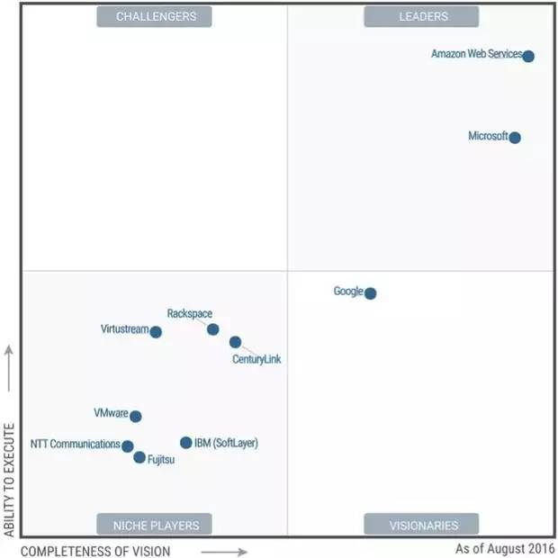 Gartner2017年IaaS魔力象限: