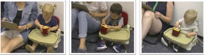 实验中,宝宝们努力完成任务(图片来源:Julia Anne Leonard)
