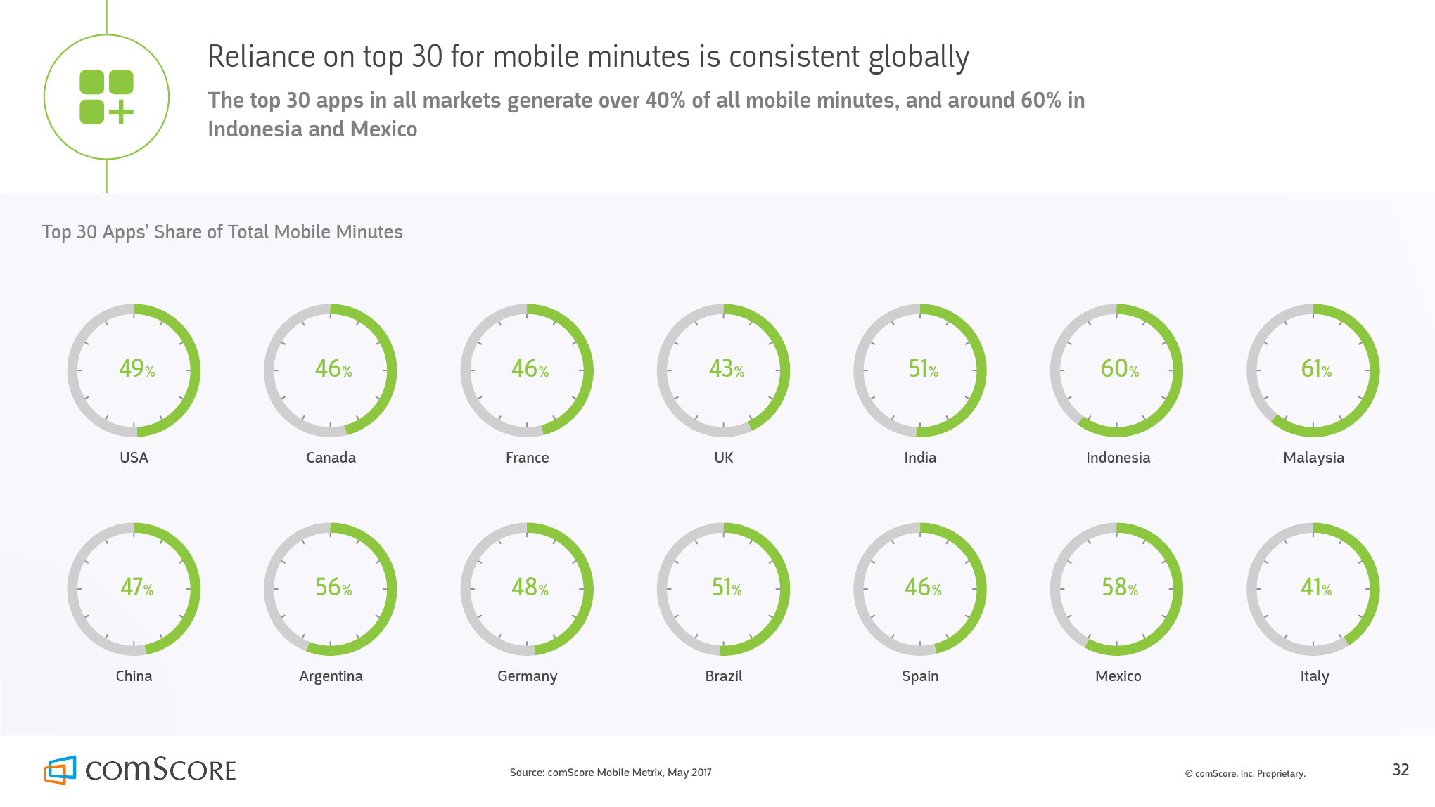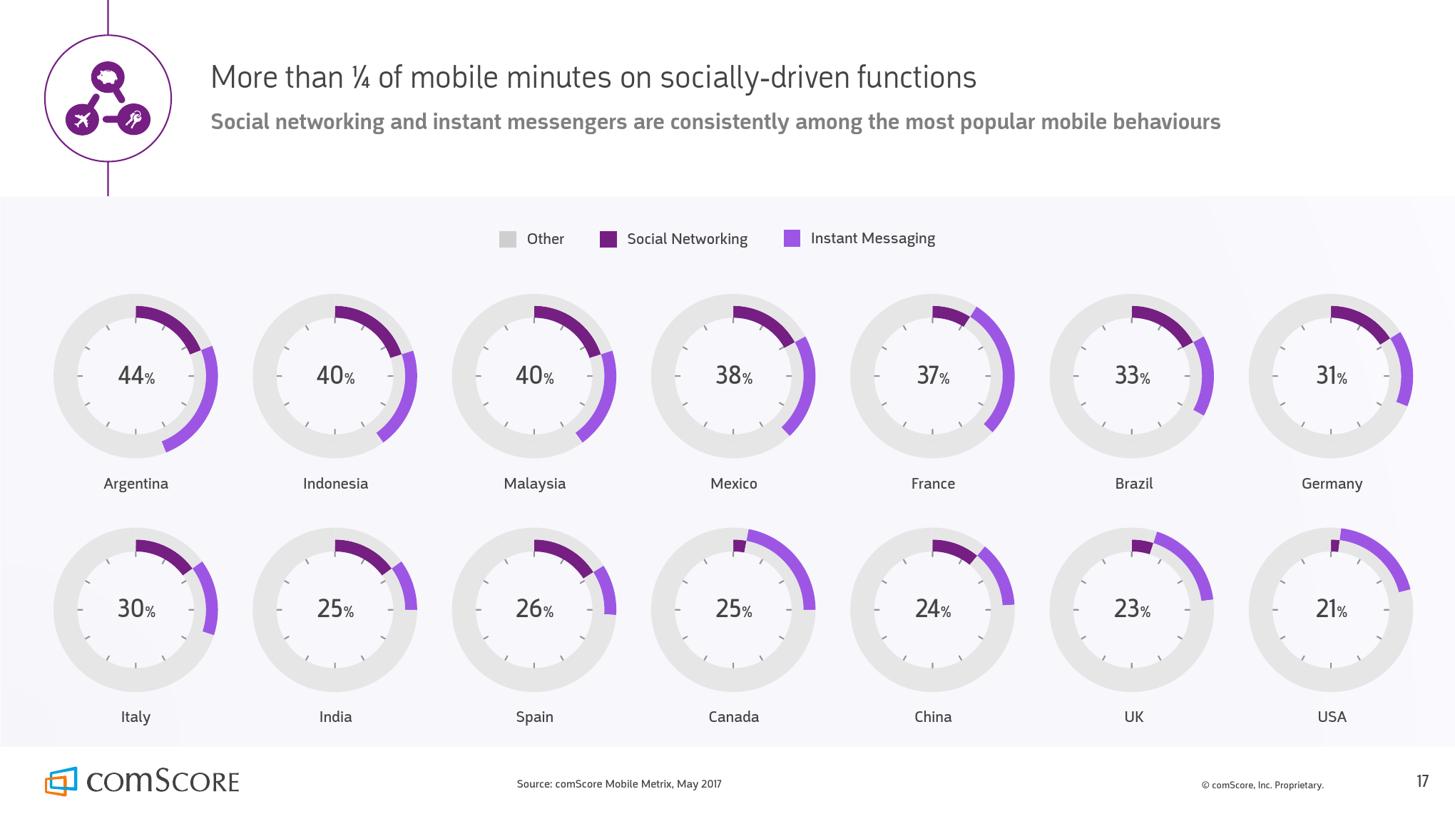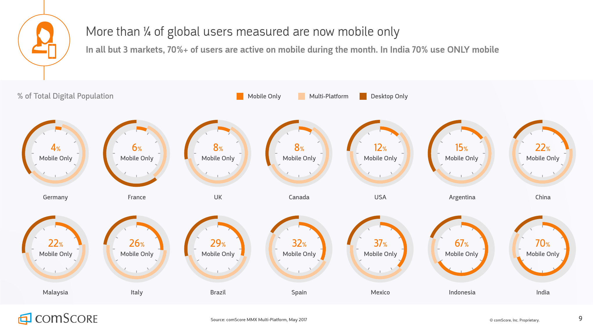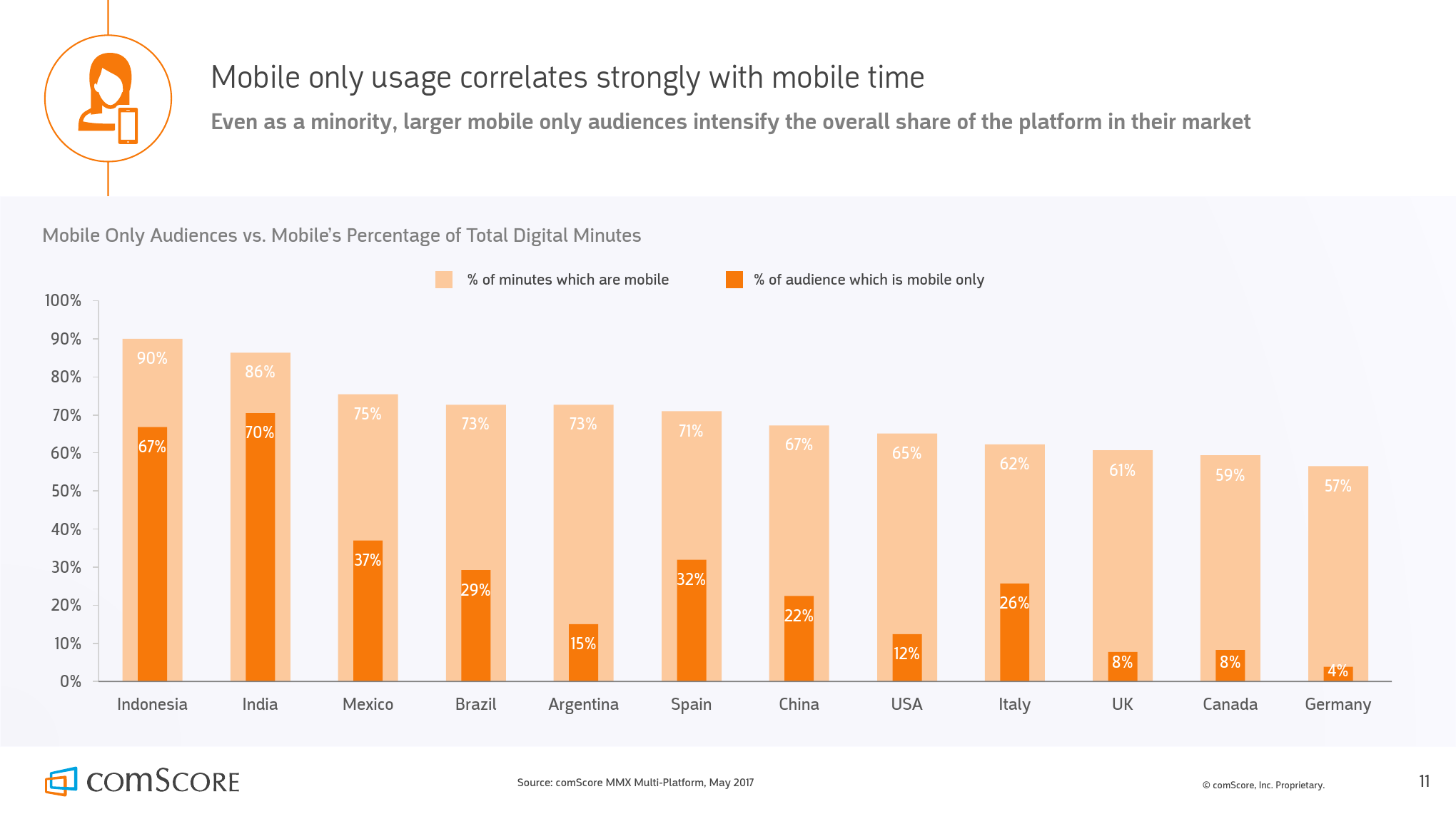 comScore发布最新《2017全球移动报告》(2017 The Global Mobile Report)。在全球移动报告中,comScore使用来自14个市场(美国,加拿大,英国,法国,德国,意大利,西班牙,阿根廷,巴西,墨西哥,中国,印度,印度尼西亚和马来西亚)的手机和多平台数据,内容类别和品牌正在塑造整个移动生态系统。