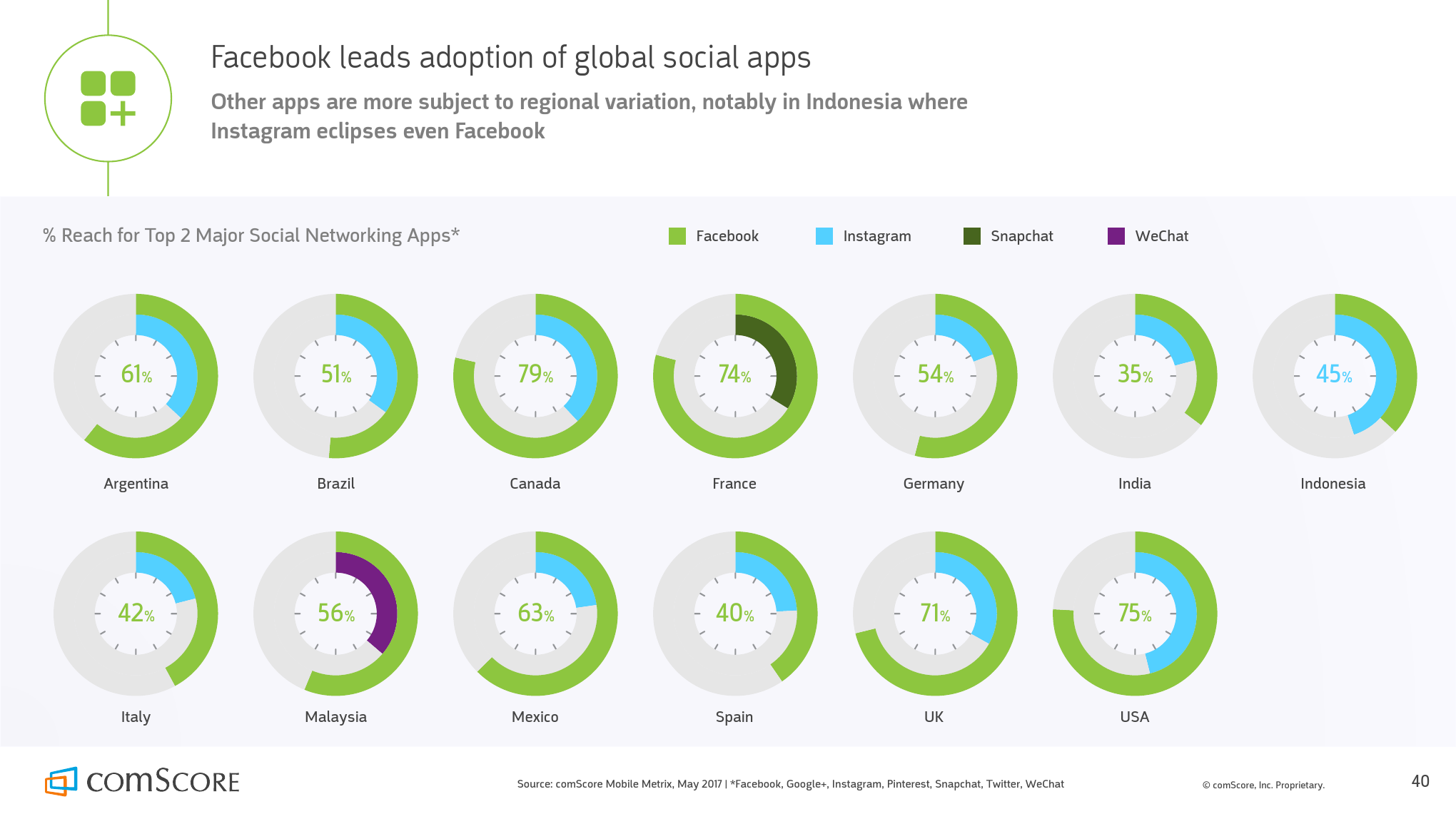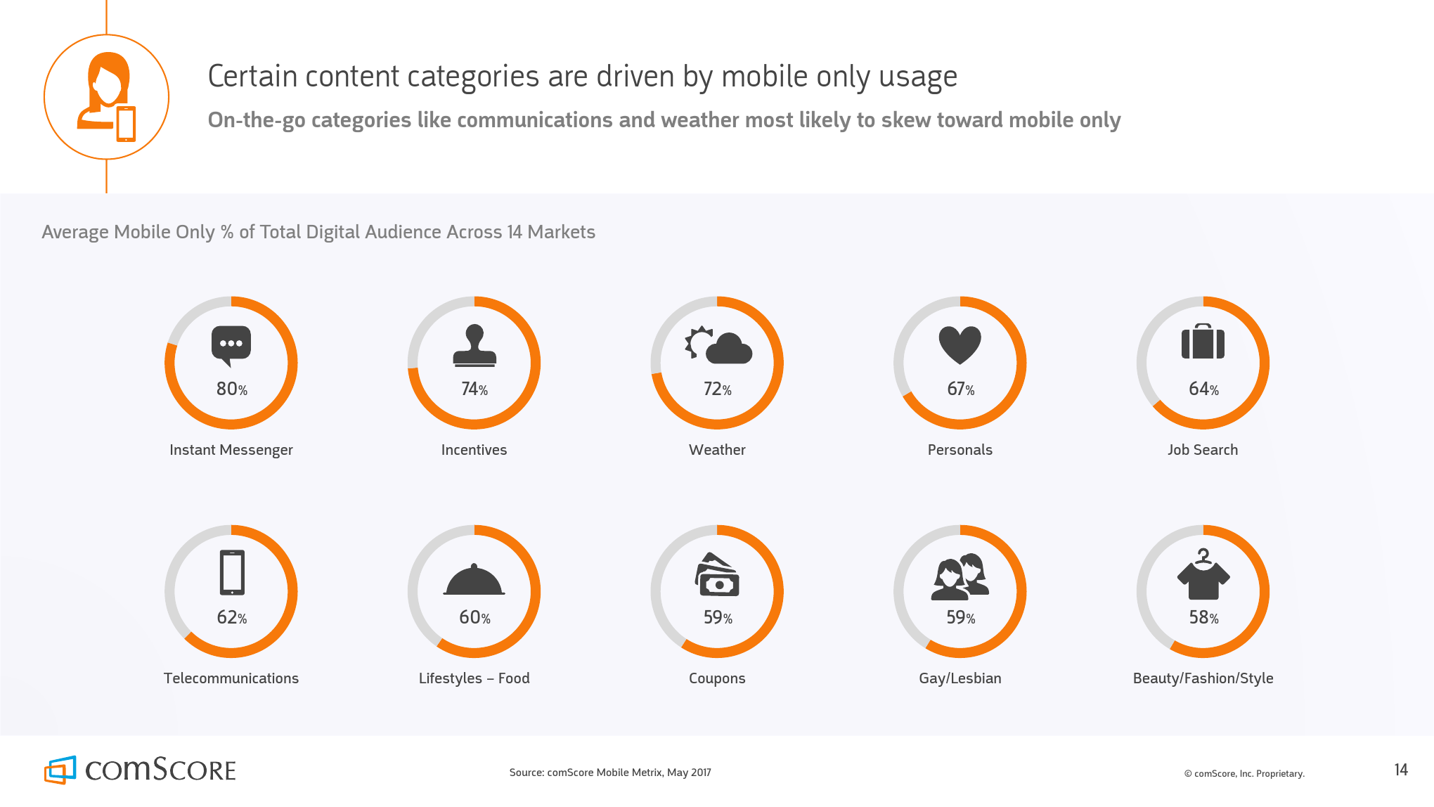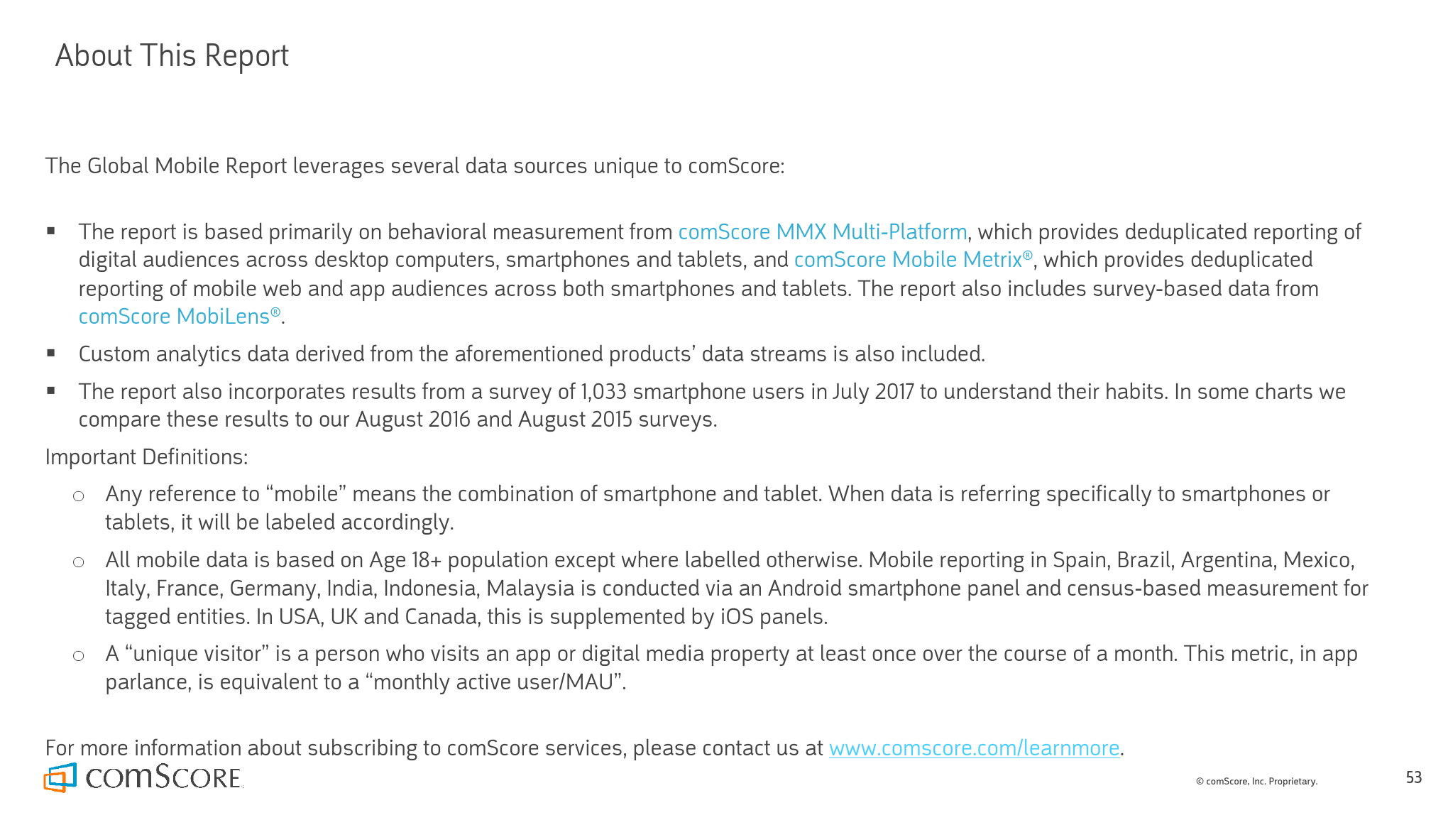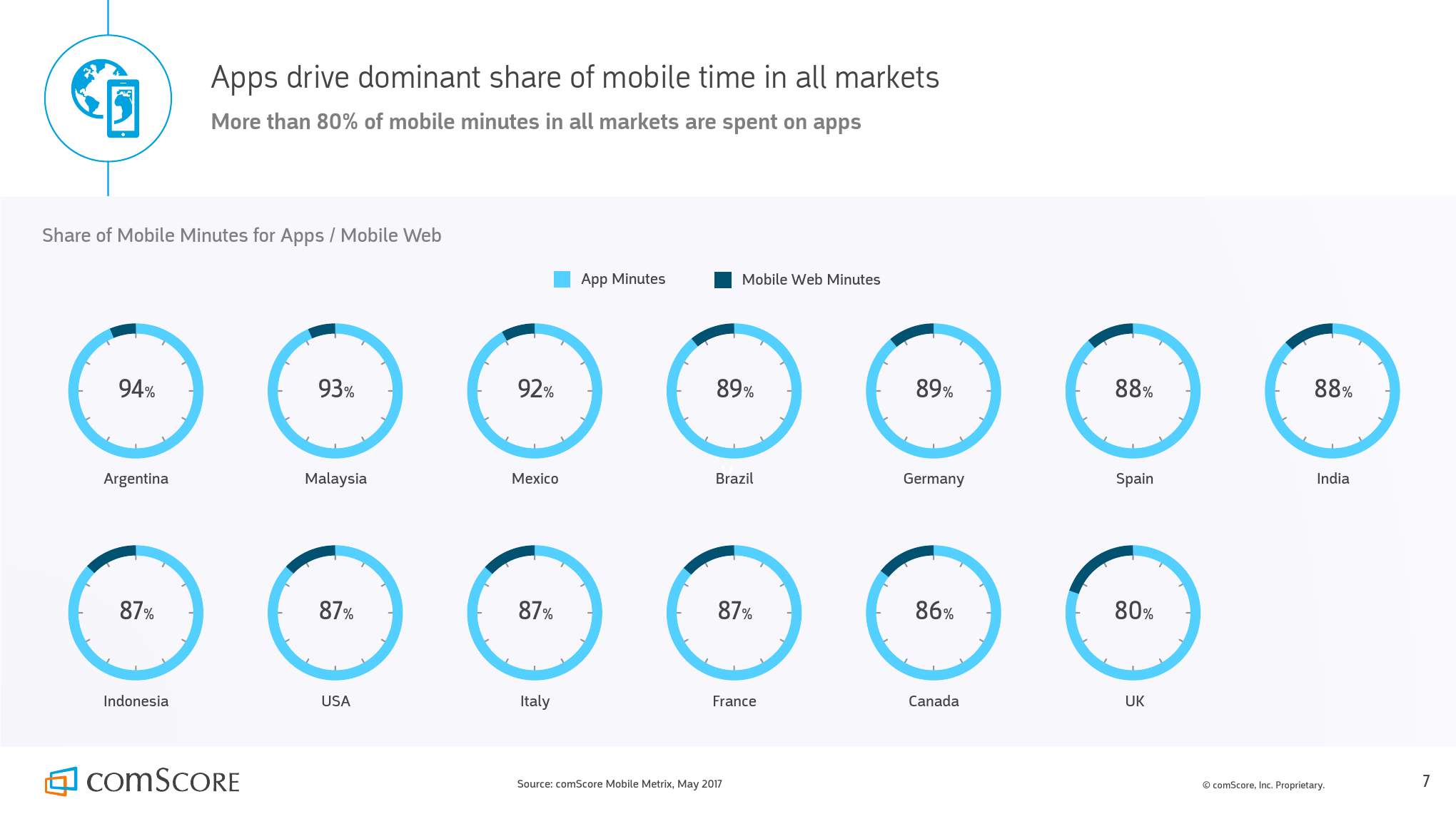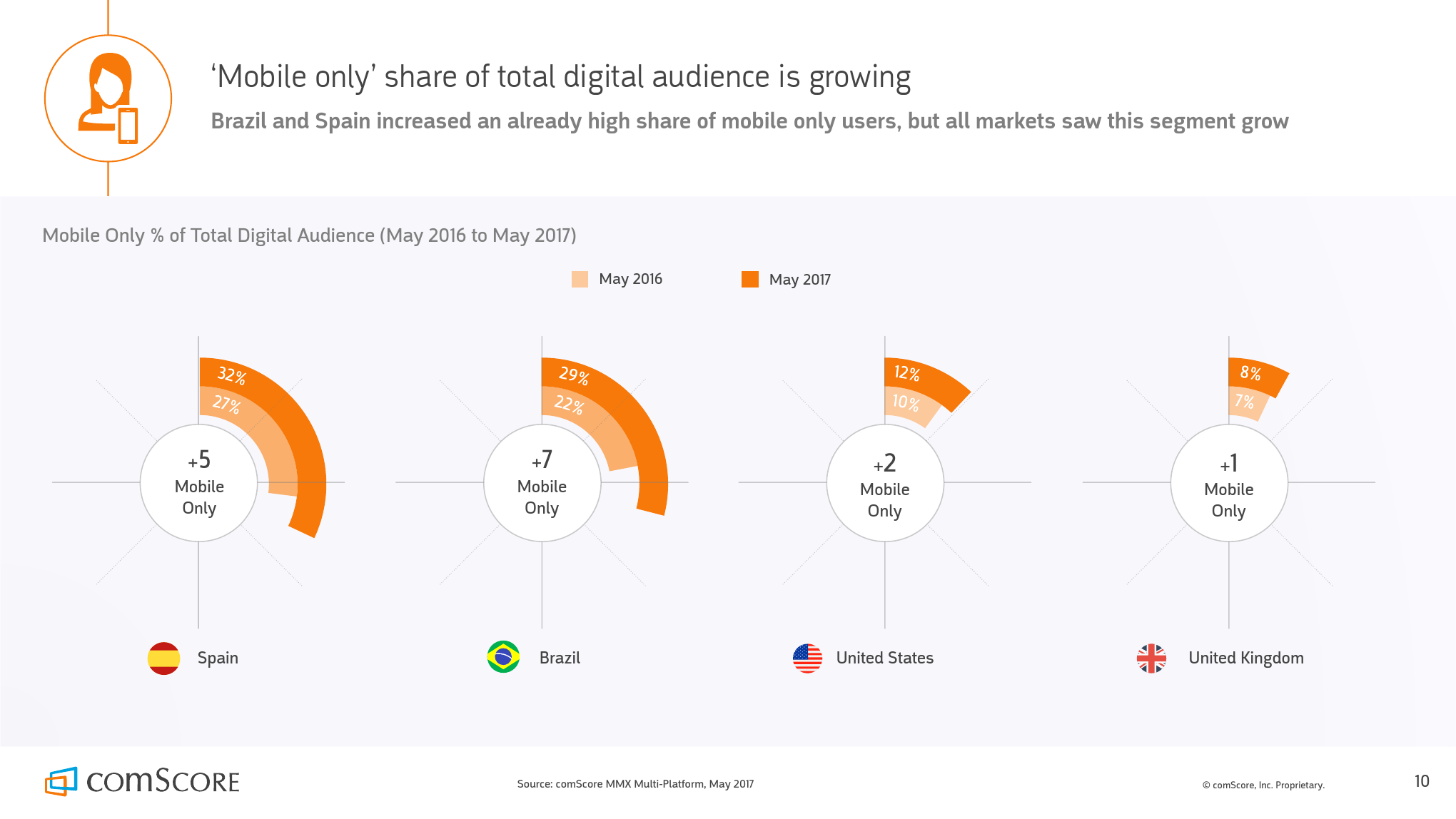 comScore发布最新《2017全球移动报告》(2017 The Global Mobile Report)。在全球移动报告中,comScore使用来自14个市场(美国,加拿大,英国,法国,德国,意大利,西班牙,阿根廷,巴西,墨西哥,中国,印度,印度尼西亚和马来西亚)的手机和多平台数据,内容类别和品牌正在塑造整个移动生态系统。
