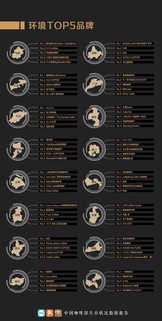 “环境友好型”、“服务nice型”咖啡馆,连锁品牌不上榜,独立咖啡馆占鳌头。