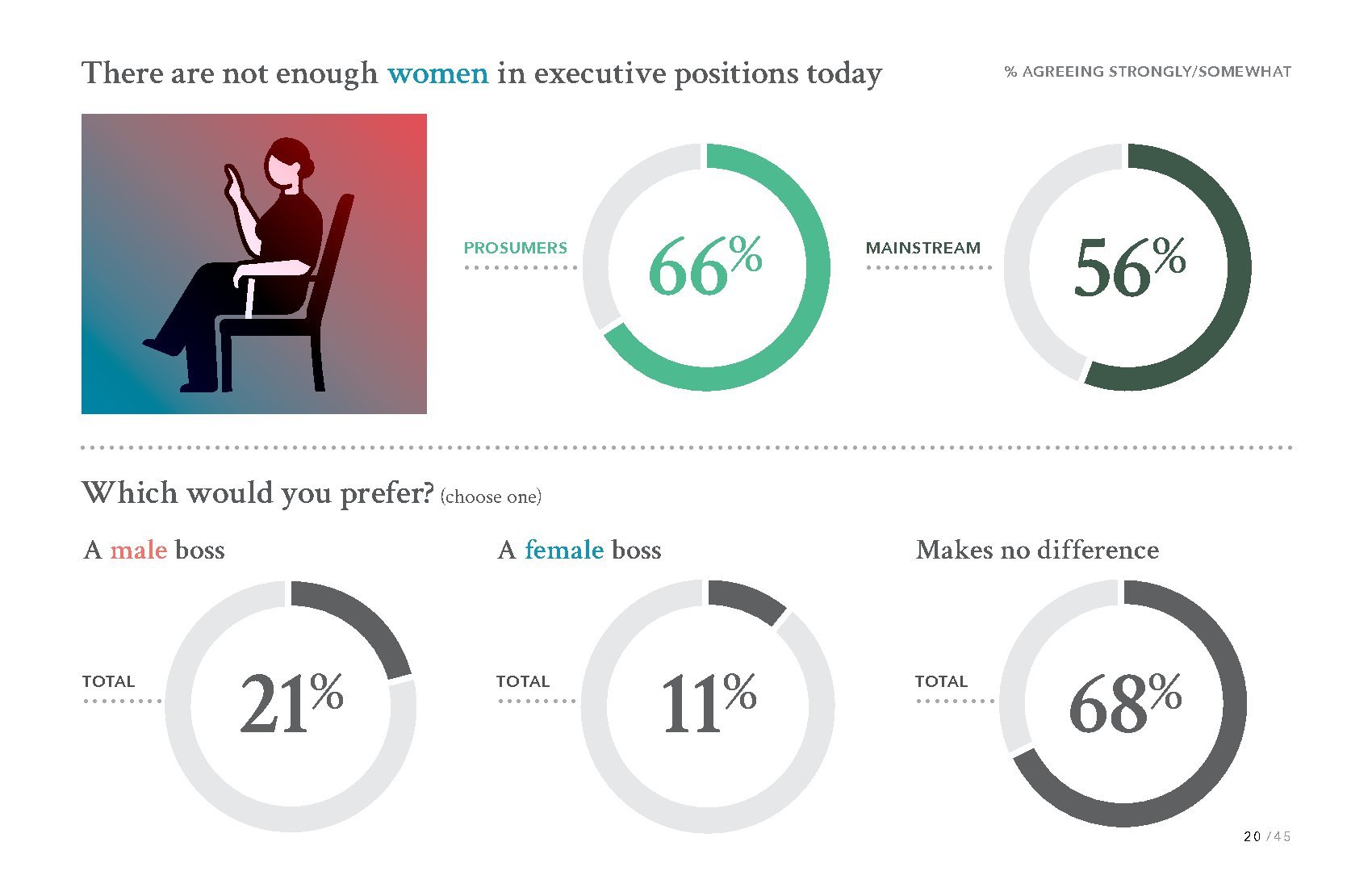 2/3的受访者不喜欢男性(21%)或女性(11%)老板,尽管对男性老板的方案更高;