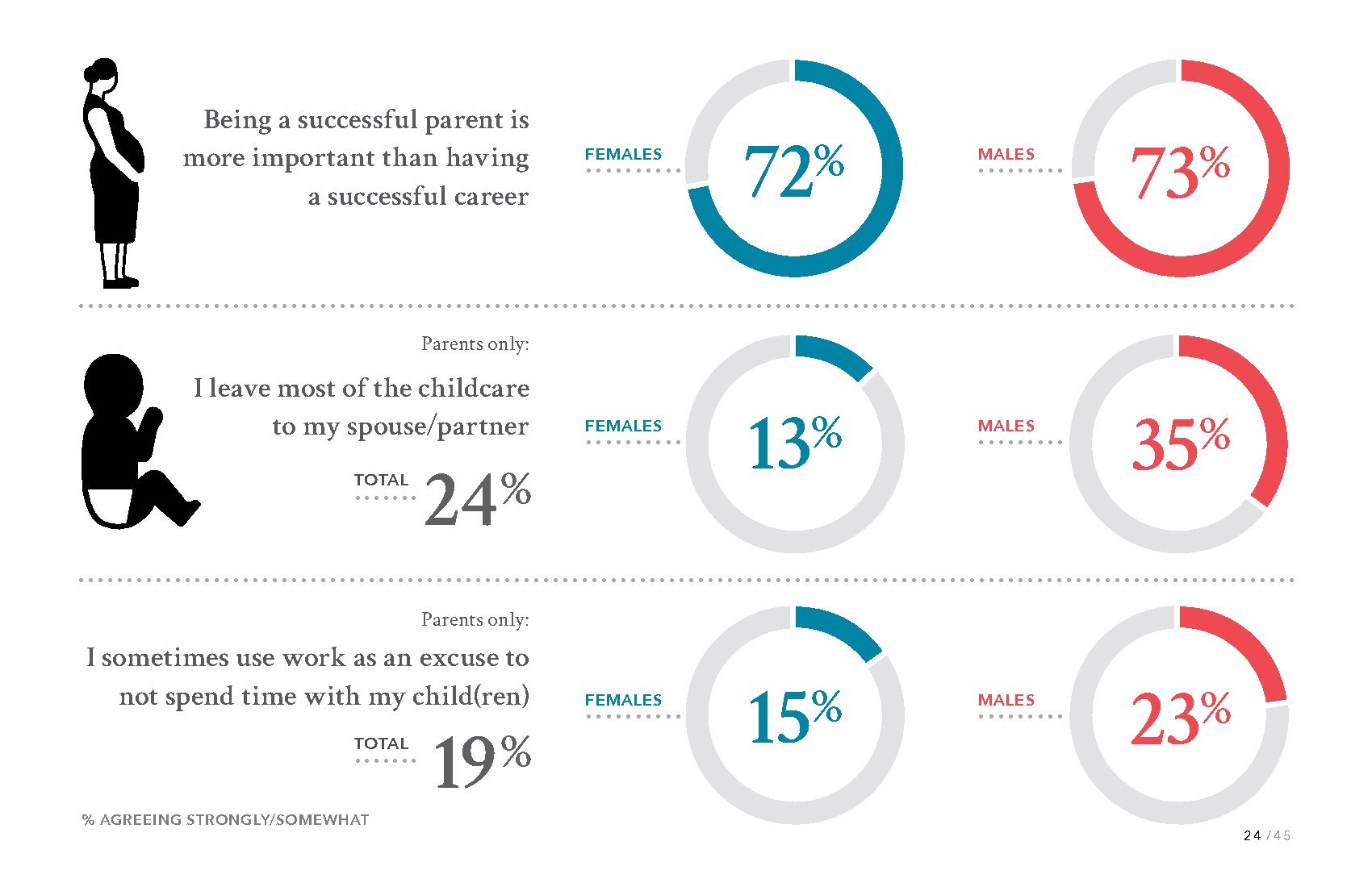 3/4的男性(73%)和女性(72%)受访者认为成功的父母比成功的职业更重要。