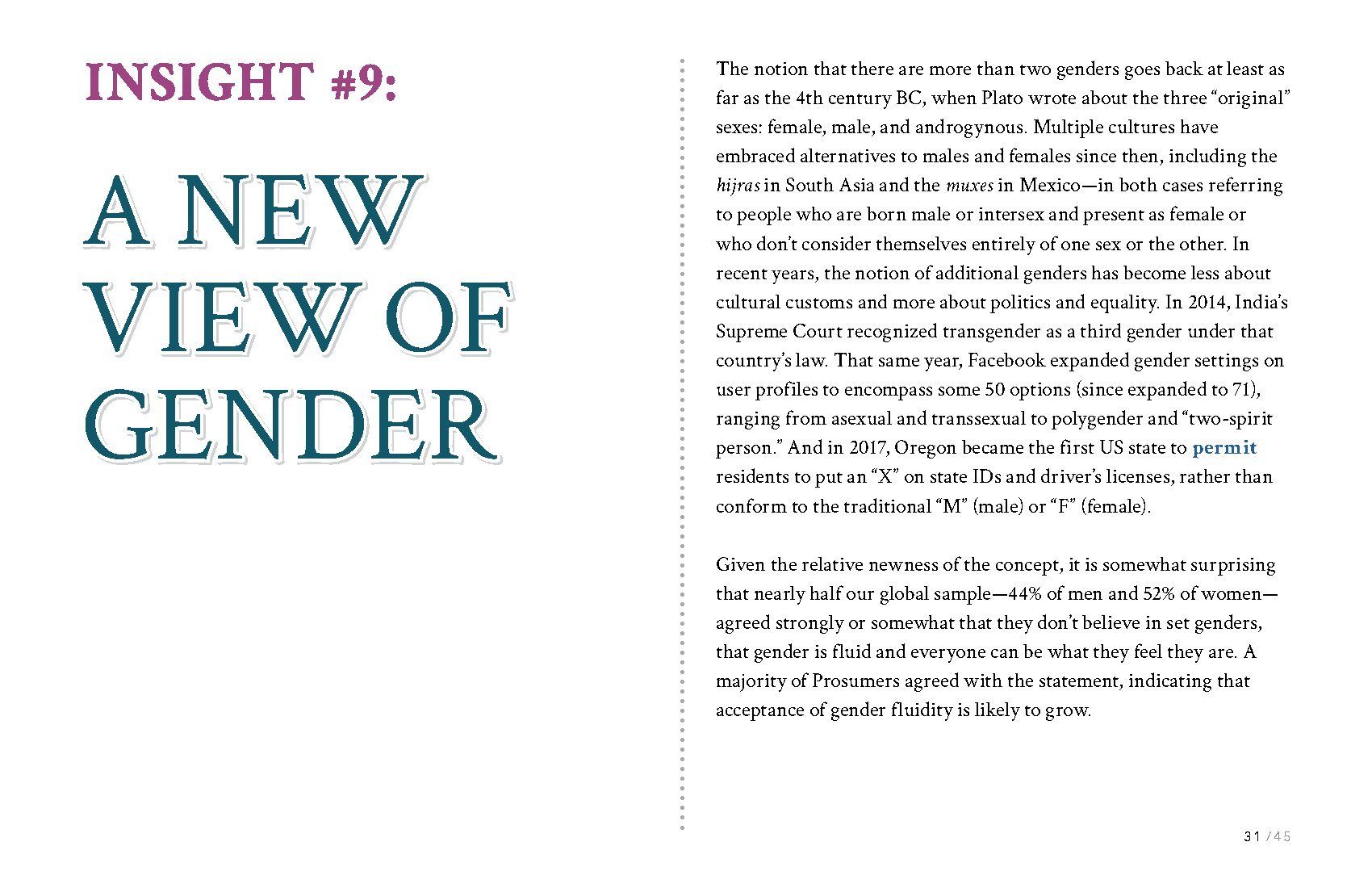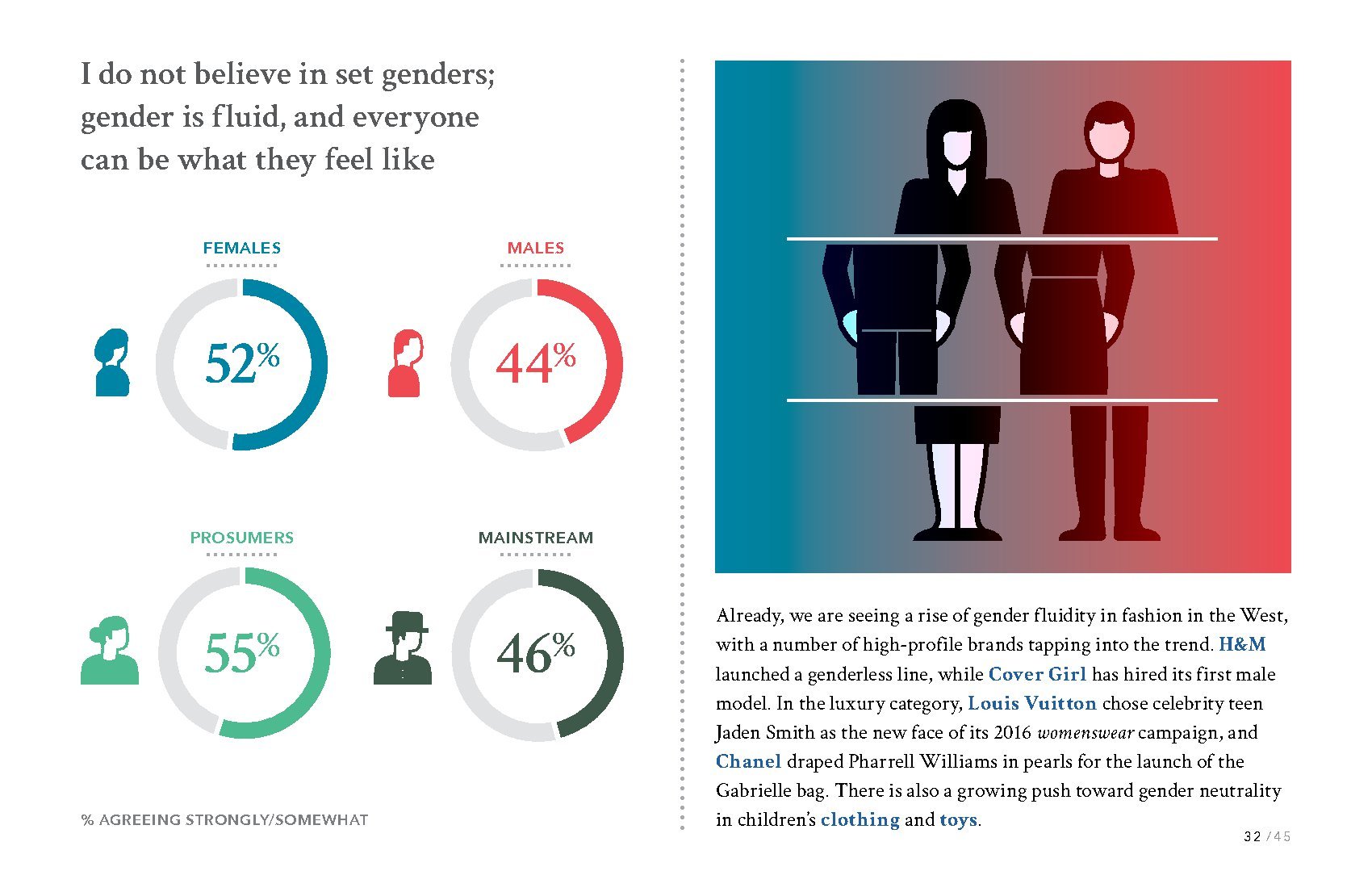 52%的女性和44%的男性受访者认为性别不是固定的,人们觉得自己是什么性别就是什么性别;