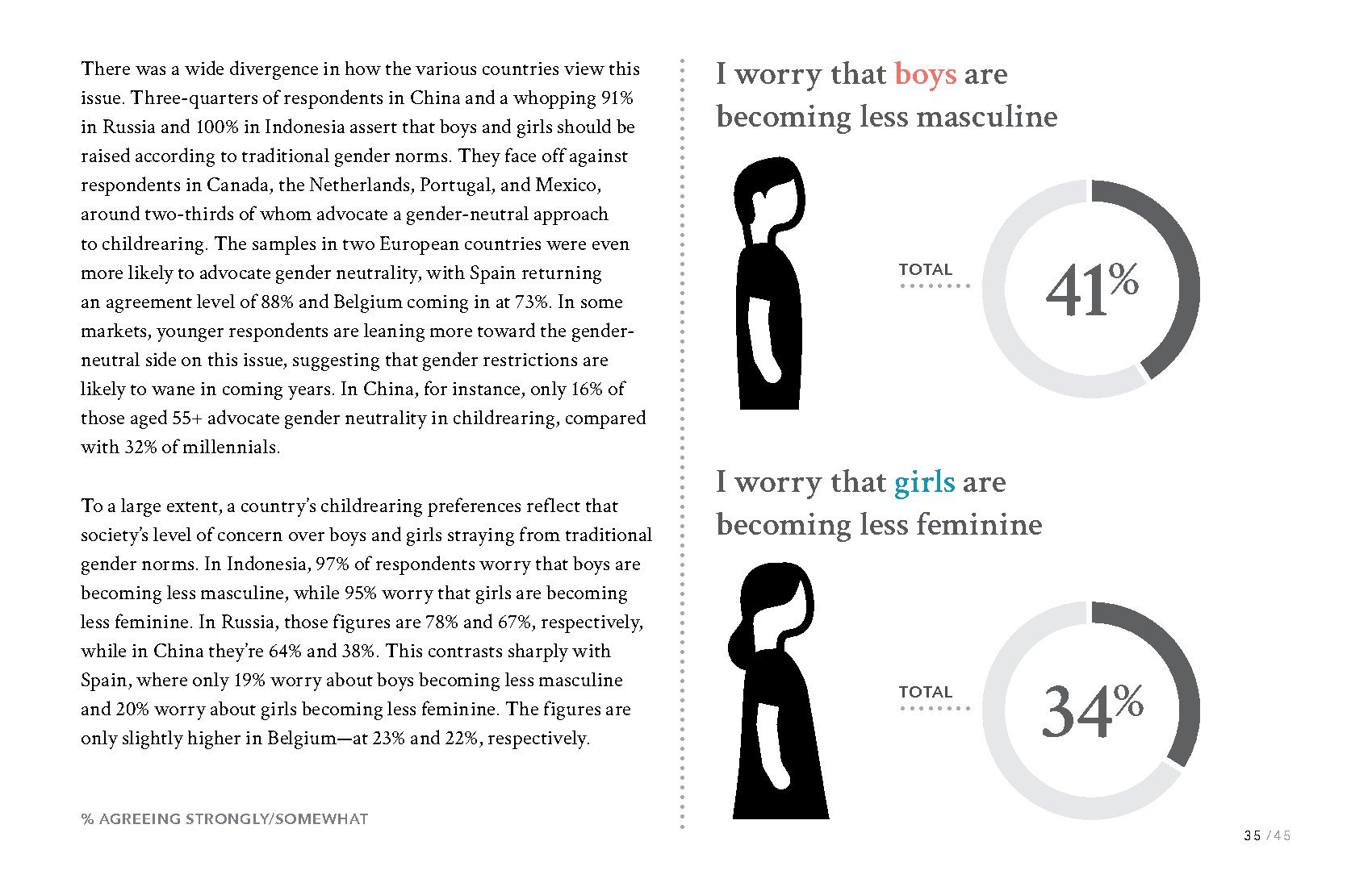 41%的受访者担心男孩变得不阳刚,34%的受访者担心女孩变得不女性化;