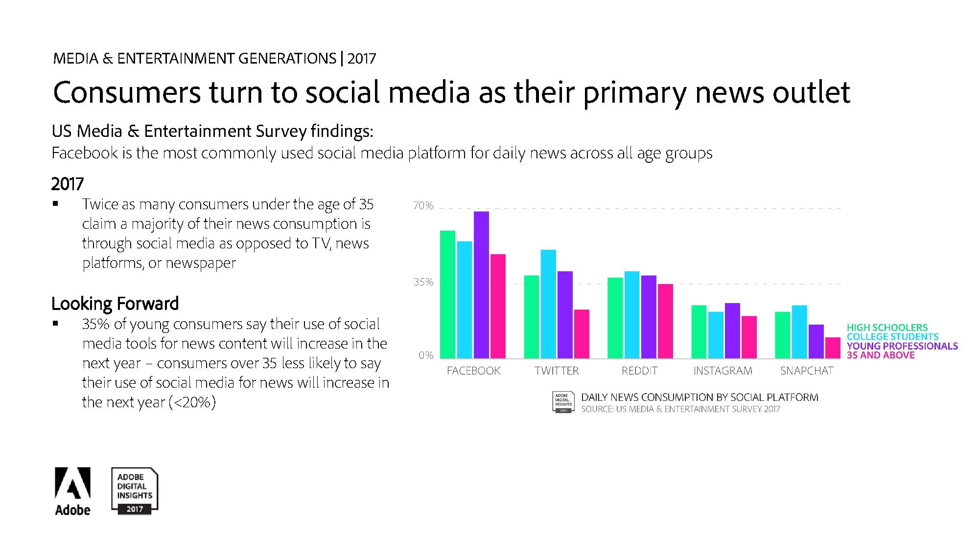 社交媒体也是年轻人阅读新闻的首要渠道,35%的美国年轻消费者表示明年将更多地在社交媒体上阅读新闻。