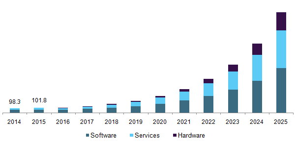 2016年,图形处理单元(GPU)支配了硬件市场。与其他芯片组相比,GPU可以提供更好的性能。增强虚拟内容的发展需求使得深度学习应用对GPU的需求日益增加。行业巨头的研发活动有望对GPU芯片组的发展需求产生积极的影响。例如,2017年初,谷歌宣布推出其云机器学习和计算引擎来提升计算密集型任务的性能。