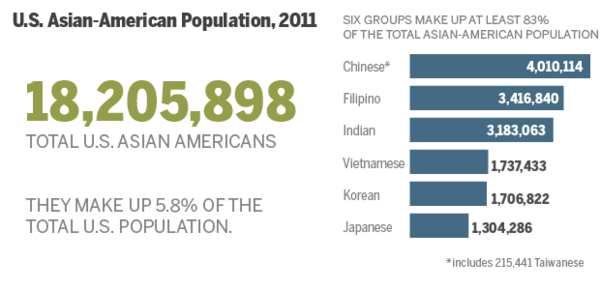 美国皮尤研究中心最近发布了一组数据,从人口,教育,收入,党派倾向,家庭观念,婚姻倾向,幸福感等方面,对亚裔,华裔和美国总体人口的状况做了对比。目前在美国的三亿人口中,1800万是亚裔,其中400万是华人。