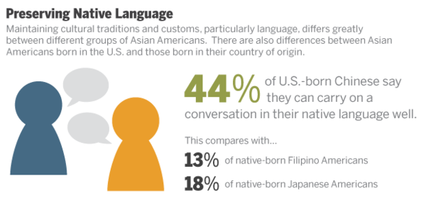 13)44%在美国出生的华人说自己还能比较流利地用中文聊天。