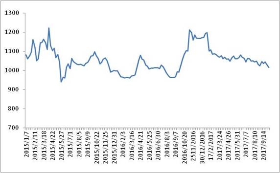 本周(2017年10月9日~10月13日),由中国物流与采购联合会和林安物流集团联合调查的中国公路物流运价指数1015.82点,比上周回落1.29%。