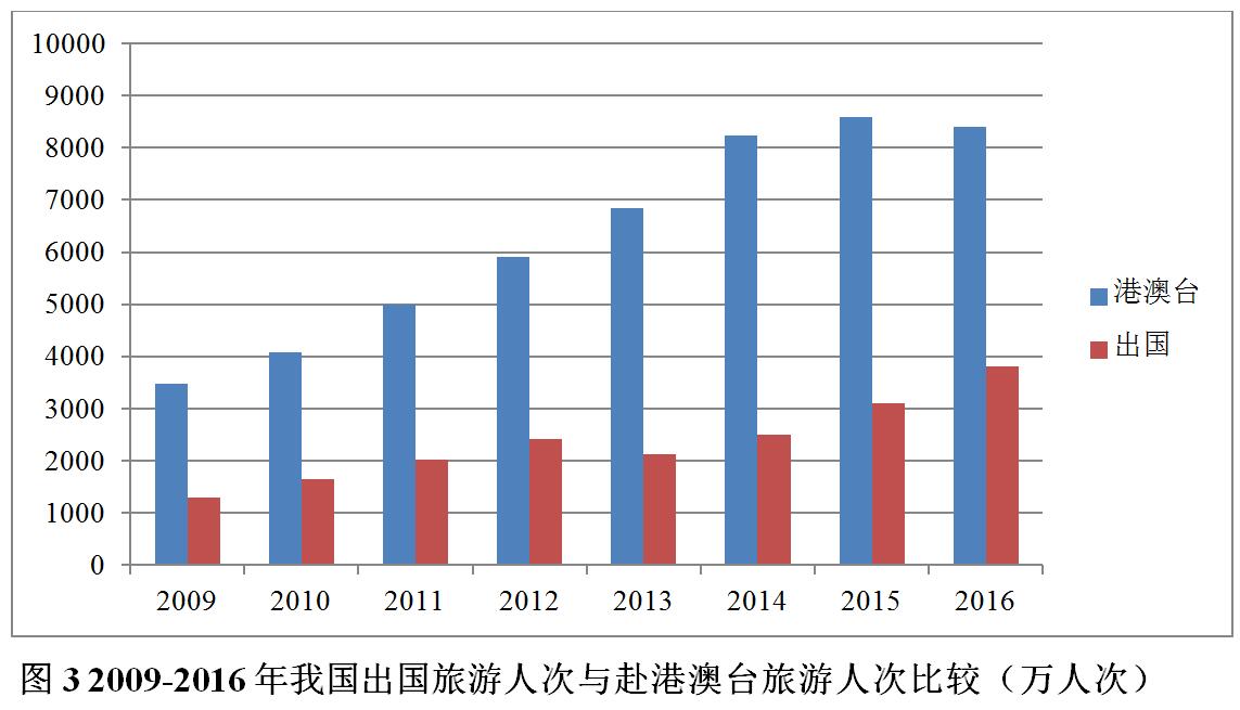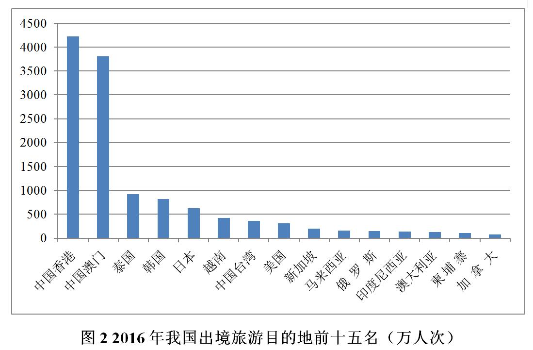 从结构上看,出国游的比例提升显著表明中国游客的脚步渐行渐远、赴“一带一路”沿线国家游客量快速增长推动了民众之间的直接沟通与交流。2016年中国游客前10位目的地为香港、澳门、泰国、韩国、日本、越南、台湾、美国、新加坡、马来西亚,主要目的地仍多为周边国家与地区。值得注意的是出国游的比例提升显著,2016年占到出境游总数的31.24%,与2015年的26.72%相比,提升了将近5个百分点。据不完全统计,赴“一带一路”沿线国家游客量也增长明显,2016年达到约5000万人次。