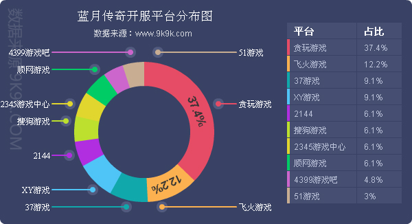 点评:《蓝月传奇》本周开服总数增涨了2.8%,其在贪玩游戏的开服频率有所回升,开服占比达到了37.4%。