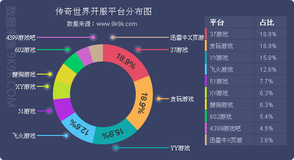 点评:《传奇世界》本周开服数减少了2.7%,但整体开服形势稳定,未新增分布占比平台。