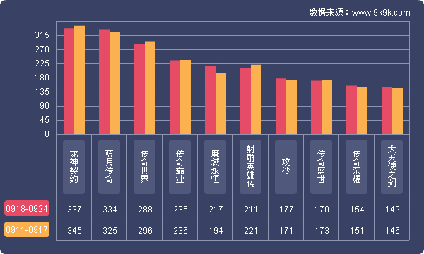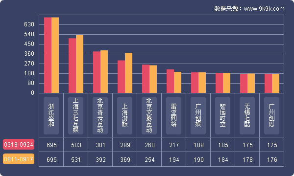 点评:本周各运营平台主打游戏开服情况与上周相比变化不大;37游戏《龙神契约》上升为平台第二主打游戏,开服频率达到了9服/天;360游戏加大了《修仙记》的开服频率升至5服/天;YY游戏则将《魔域永恒》加入主打游戏阵容,开服频率稳定在4服/天。