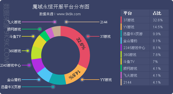 点评:本周《魔域永恒》开服数增涨了11.9%,顺利跻身榜单前五,其在37游戏的开服频率达到了8服/天,开服占比超过三成。