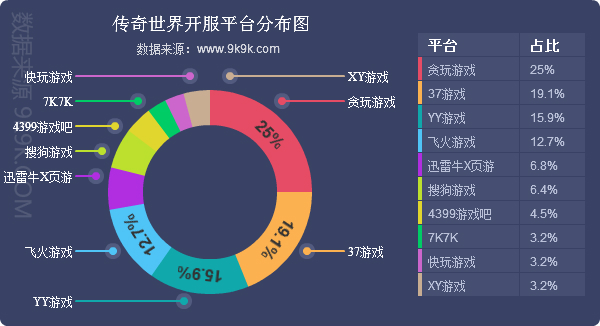 点评:《传奇世界》本周开服情况较为稳定,与上周相比基本未发生变化,新增分布占比平台7K7K、快玩游戏,开服频率皆为1服/天。