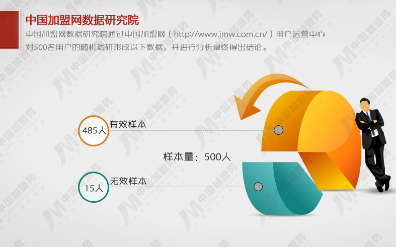 说明:中国加盟网数据研究院通过中国加盟网(//www.jmw.com.cn/)用户运营中心对500名用户的随机调研形成以下数据,并进行分析最终得出结论。