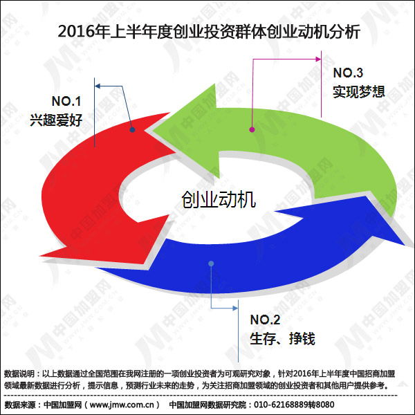 兴趣爱好是第一生产力,根据中国加盟网数据研究员的调查数据显示,55.84%的创业者是为了兴趣爱好而创业,有28.75%的创业者是为了生存,挣钱,有15.42%的创业者为了证明自我,冲击梦想。