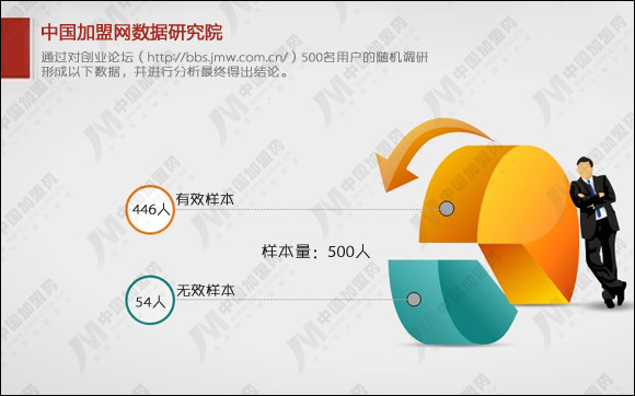 说明:中国加盟网数据研究通过对创业论坛(//bbs.jmw.com.cn/)500名用户的随机调研形成以下数据,并进行分析最终得出结论。