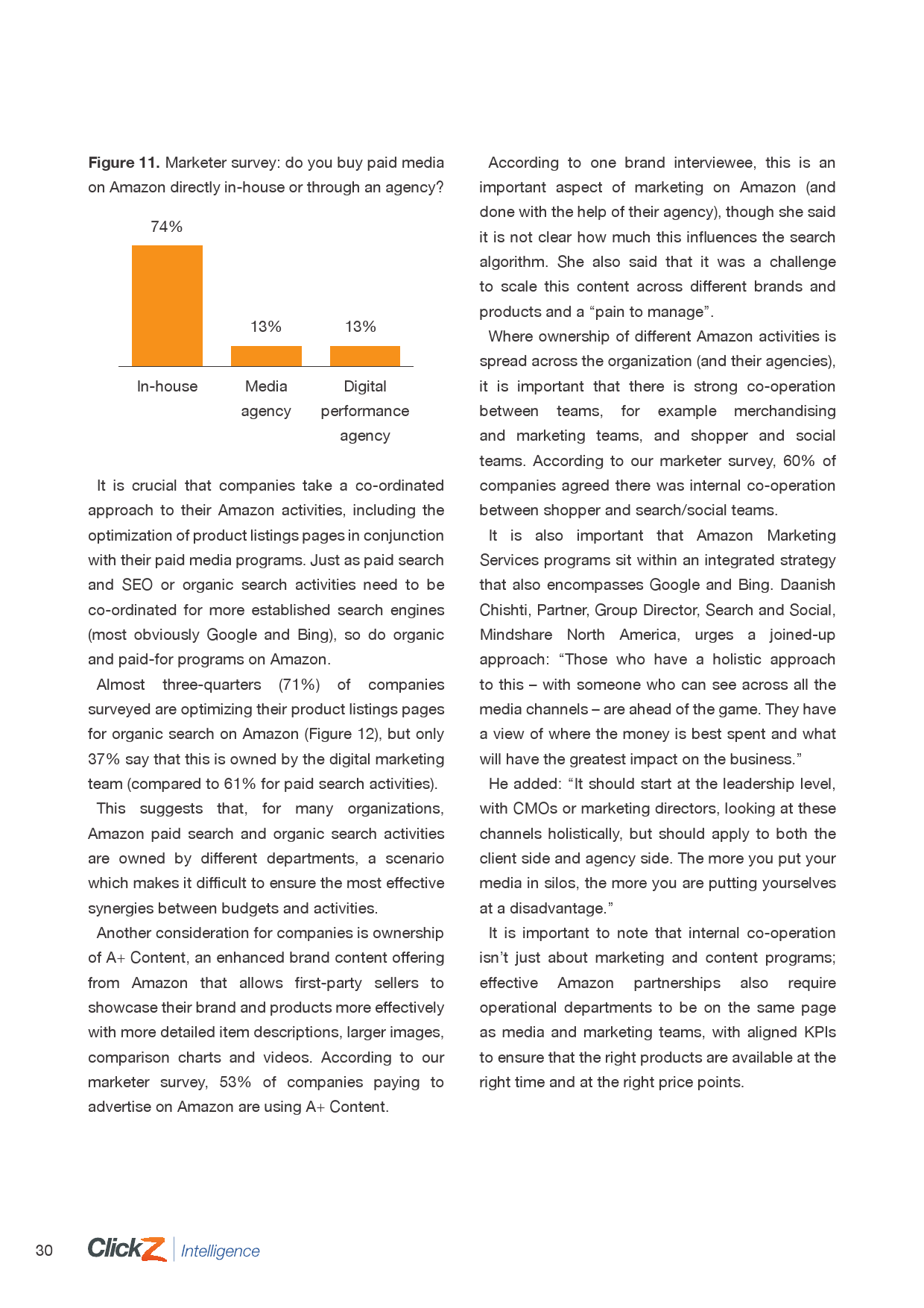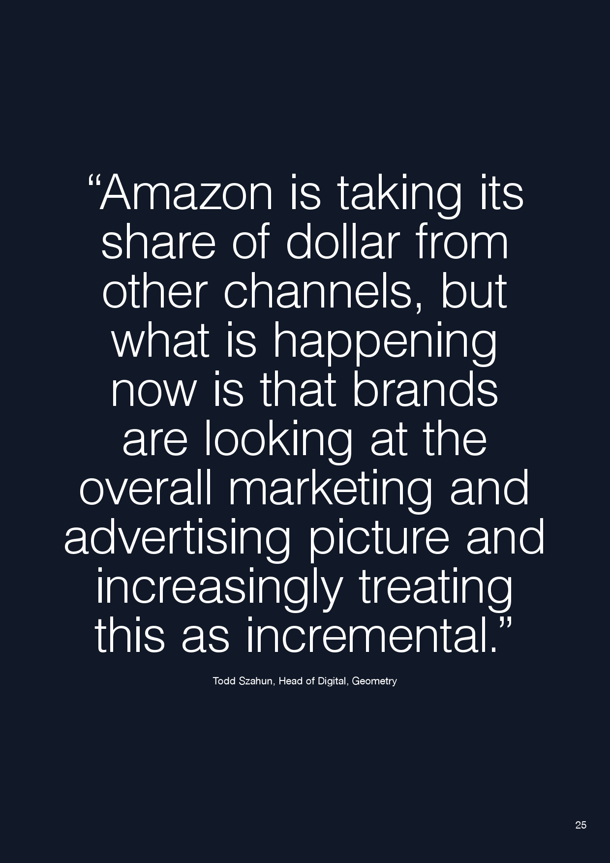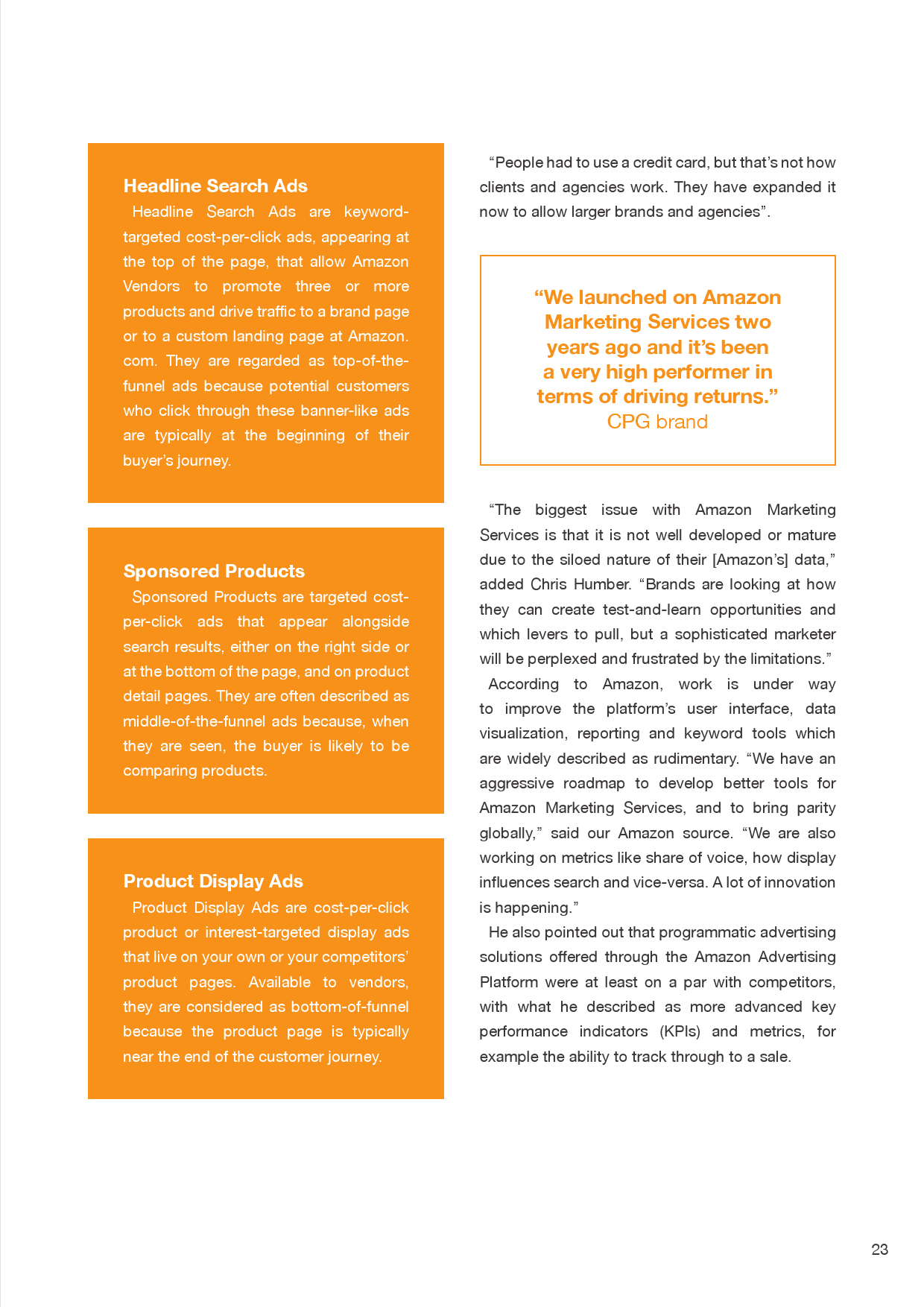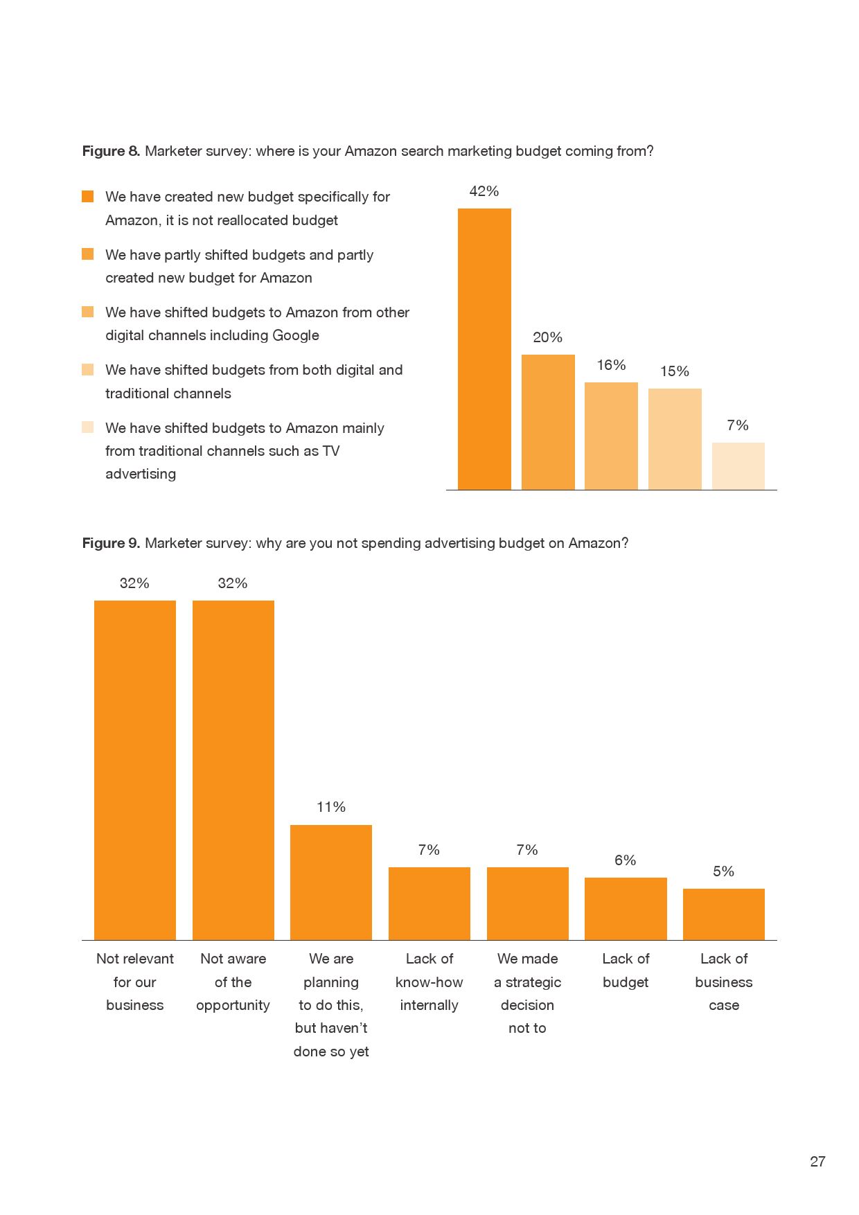 有趣的是,只有 15% 的广告主表示他们使用亚马逊的所有广告产品,即 Amazon Marketing Services (AMS), 另有17% 的广告主表示他们在亚马逊的投放有完整详尽的战略。