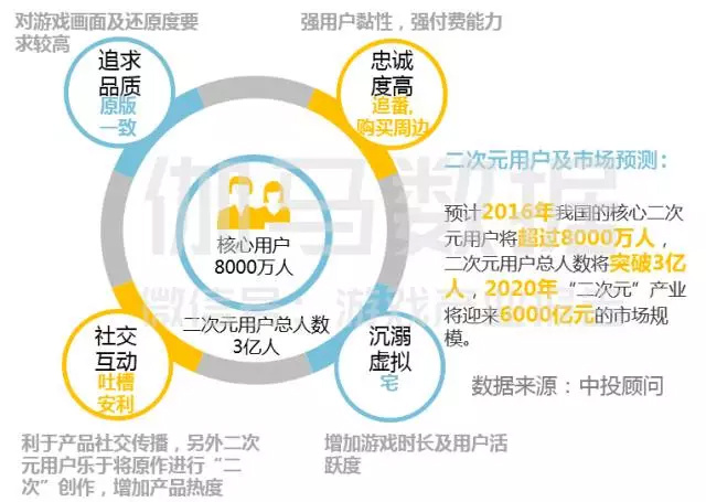 而此前伽马数据发布的《2016年7~9月移动游戏产业报告》也曾指出——去年国内核心二次元用户或超8000万人、泛二次元受众的总人数可能突破3亿。这一广大人群的价值并不仅仅在于潜在的付费可能,还在于二次元受众普遍带有的这四大特点。