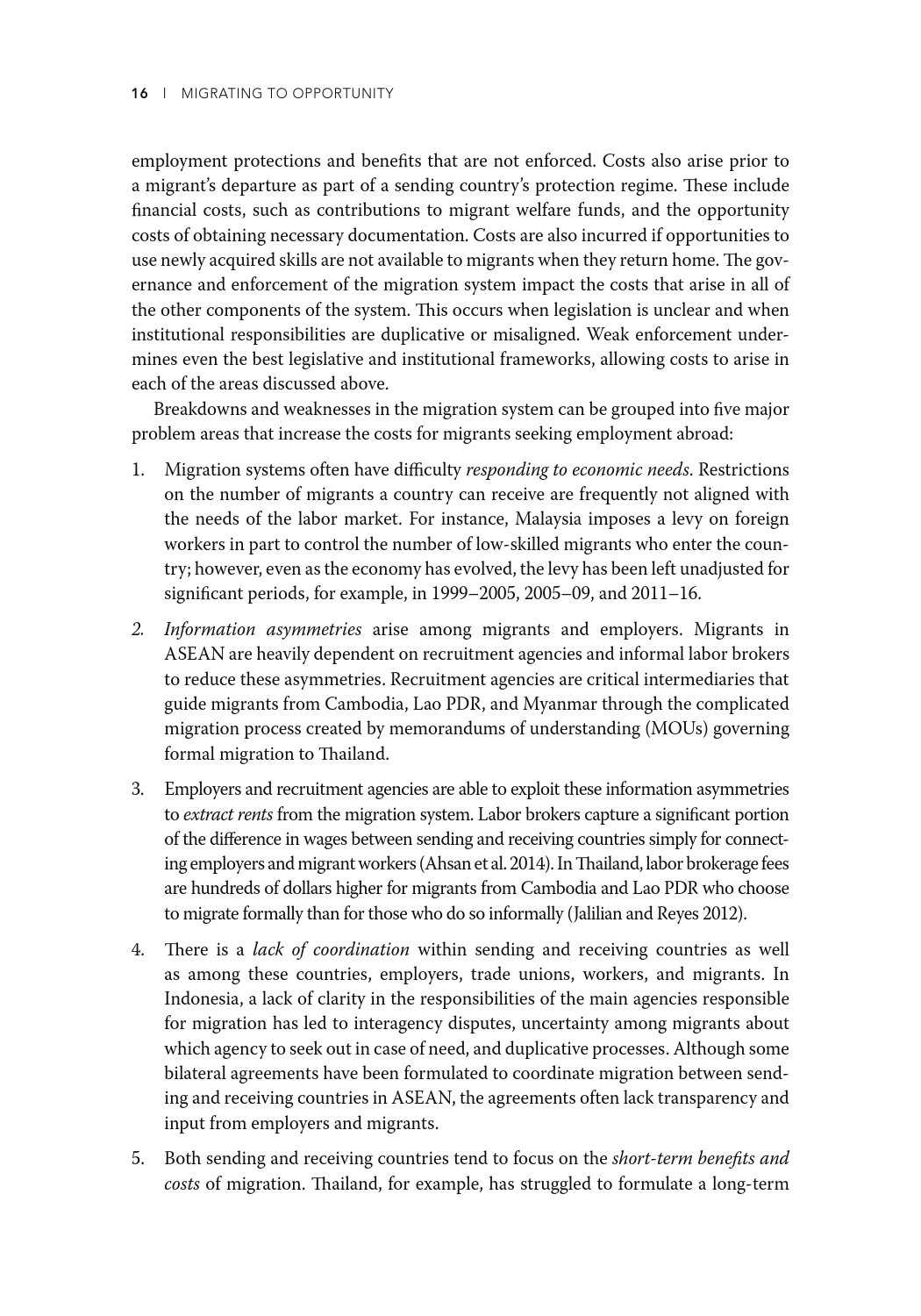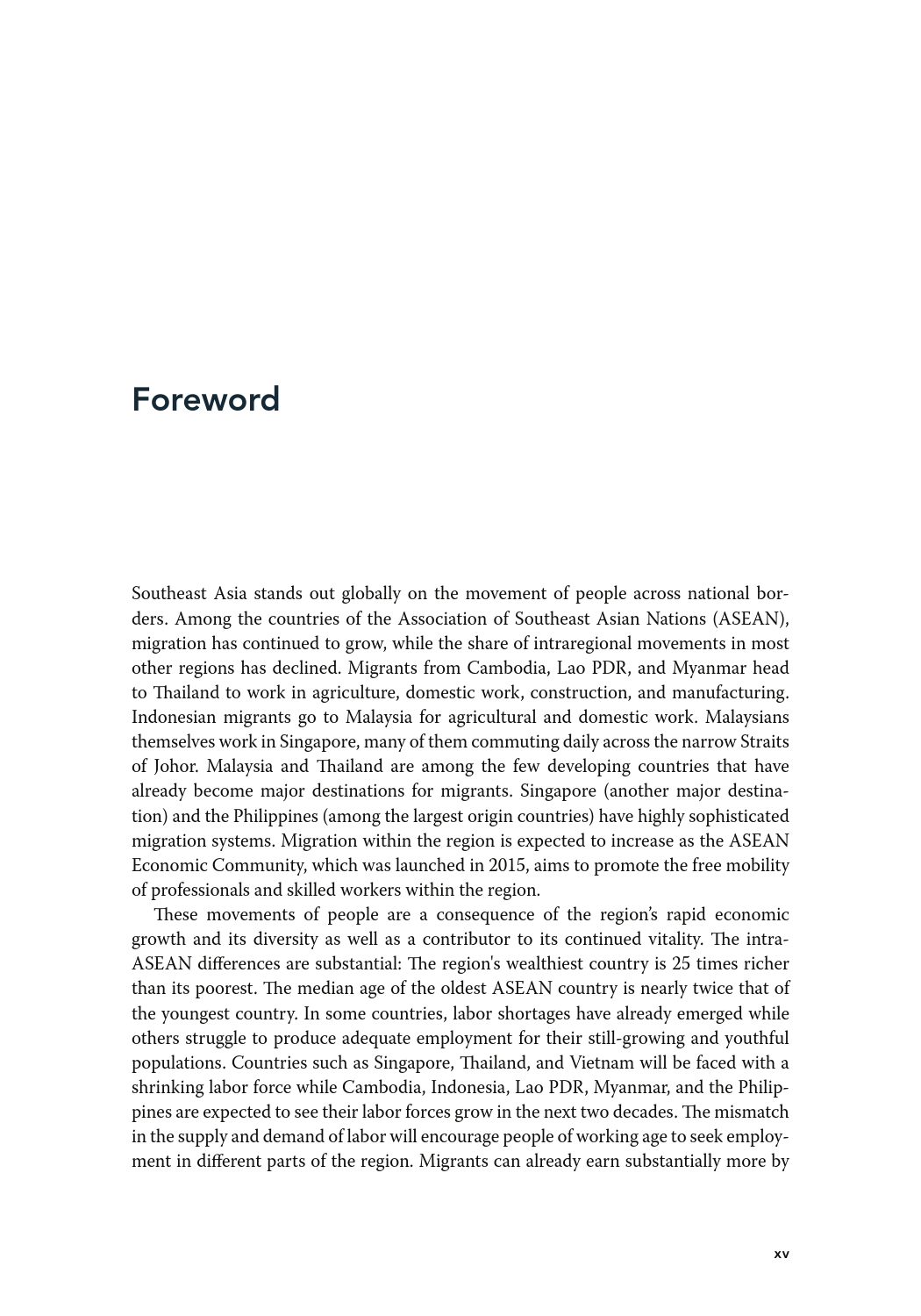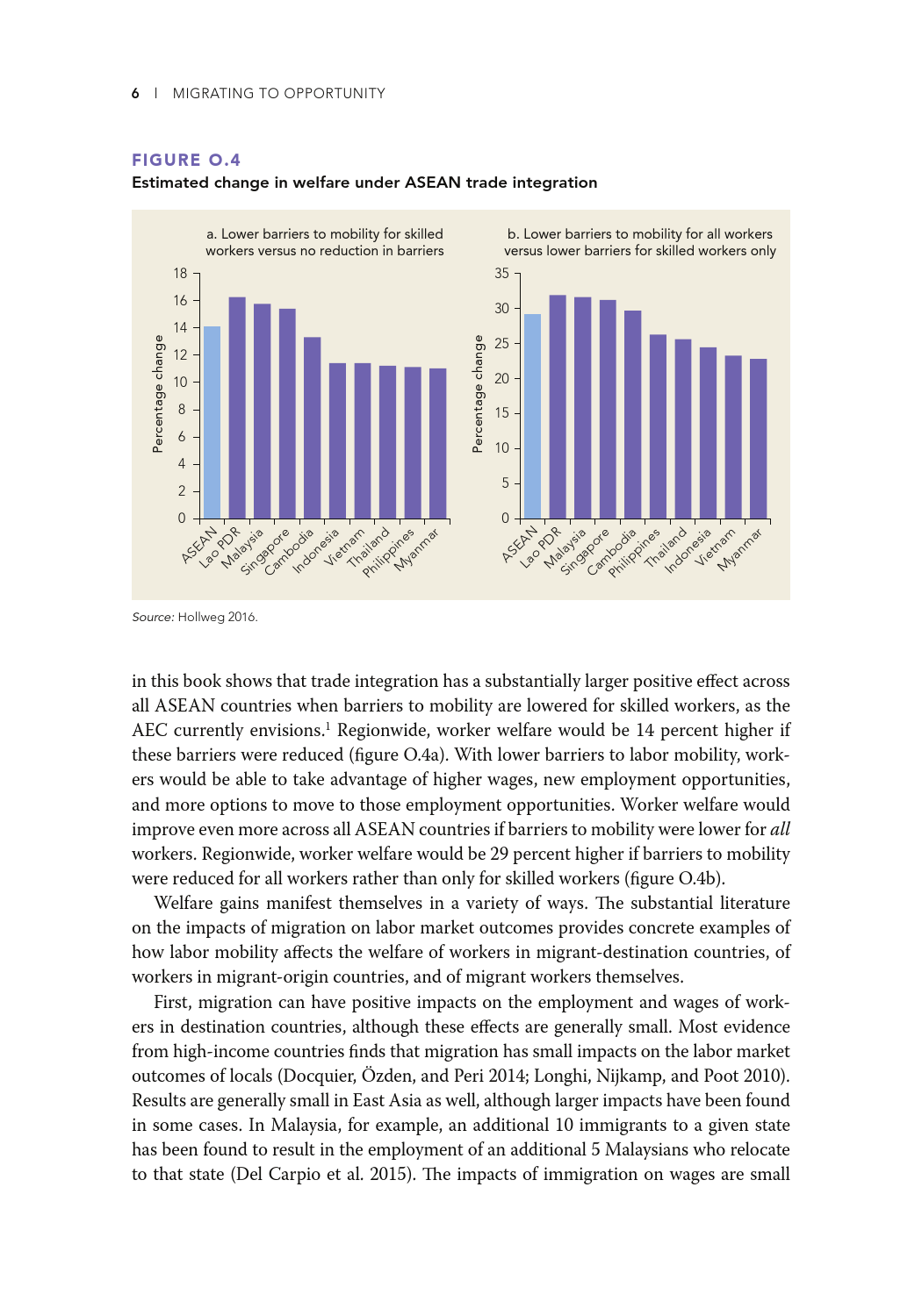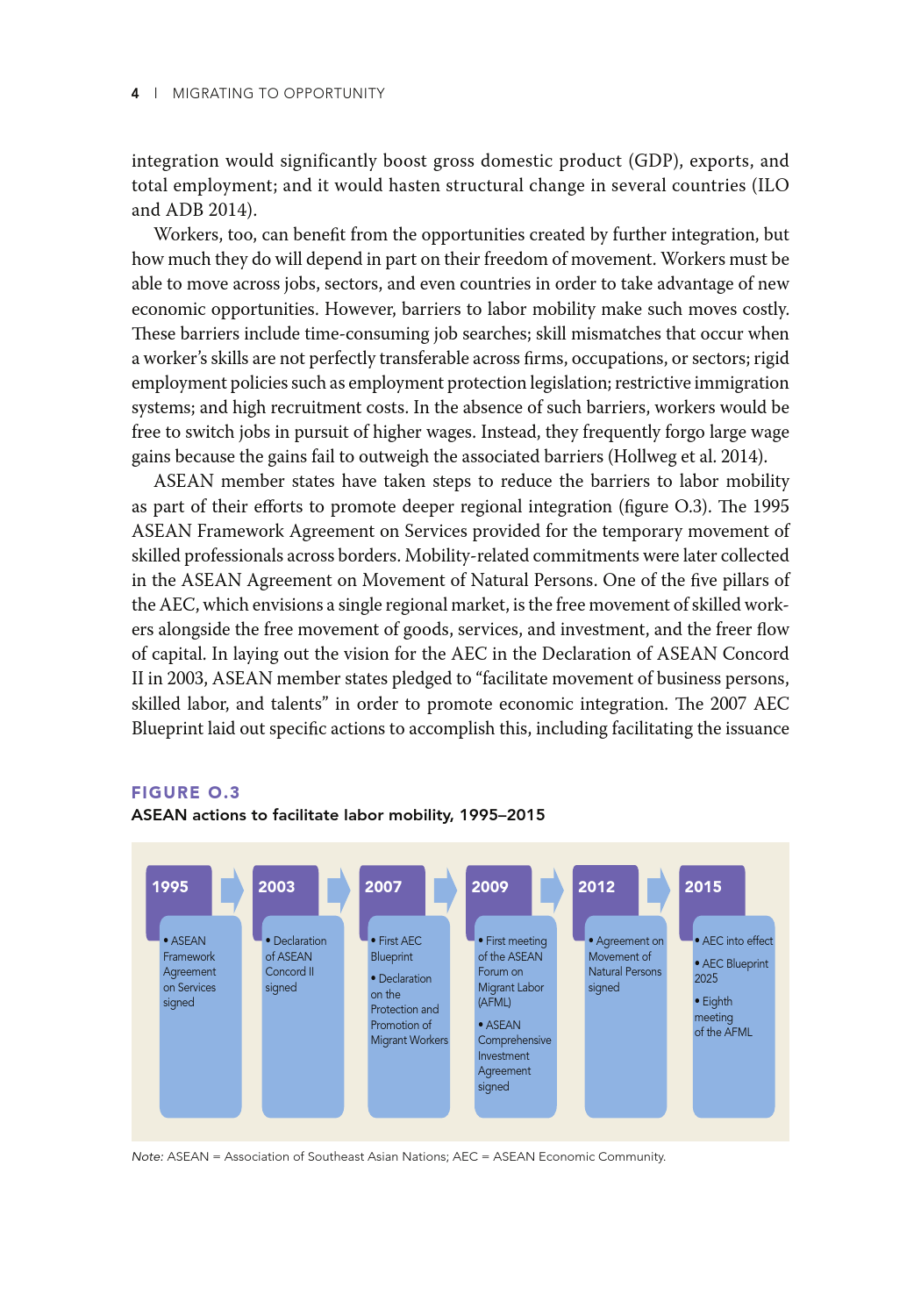 低技能且往往无证件的东盟移民迁移的目的是寻找经济机会,主要集中在建筑、种植和家政服务行业。薪酬较高的工作是有的,但工人并不一定有能力利用这些机会。东盟经济共同体已采取措施促进流动,但这些规定只涉及某些技术职业,如医生、牙医、护士、工程师、建筑师、会计和旅游专业人士,仅占该地区就业总数的5%。