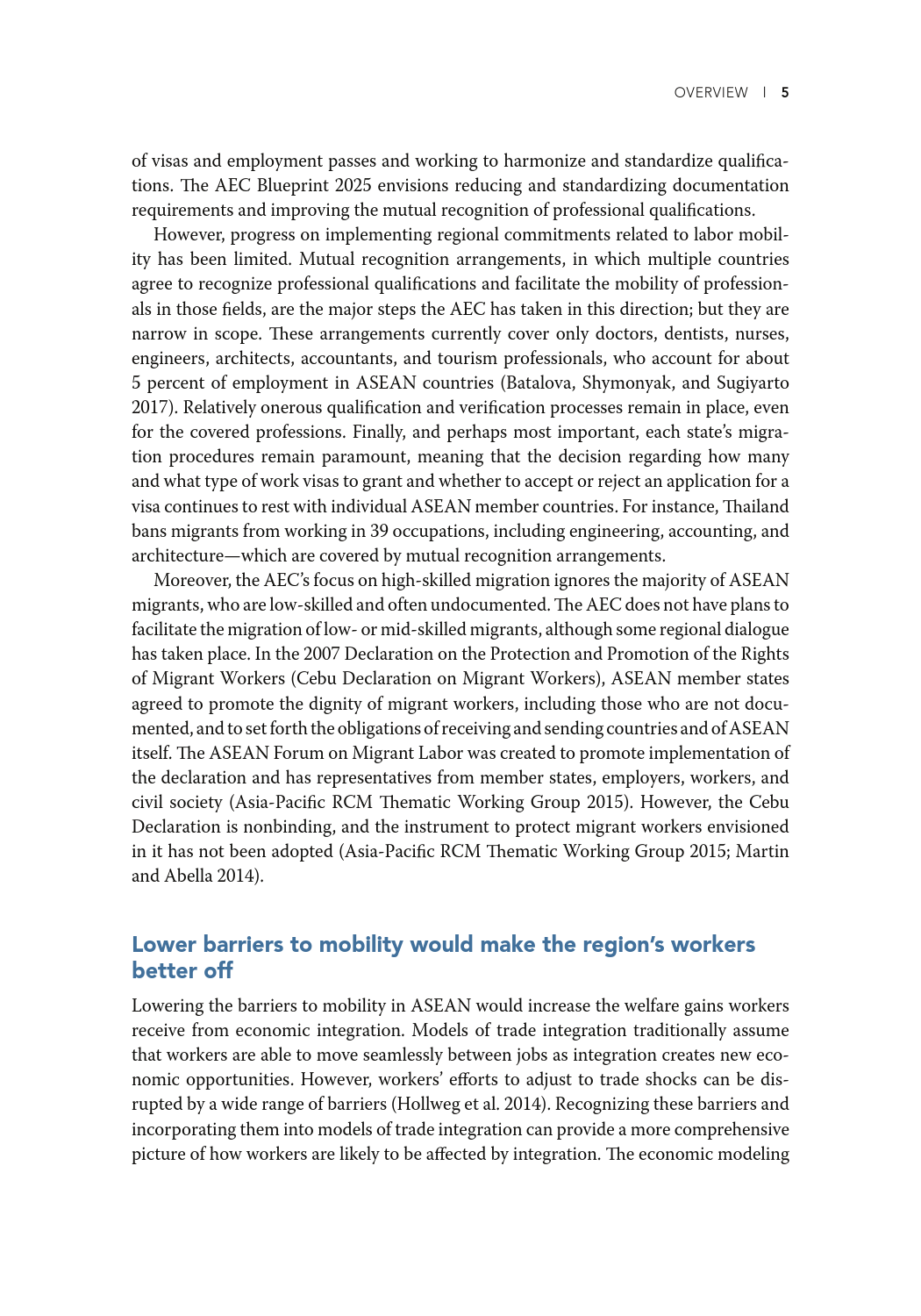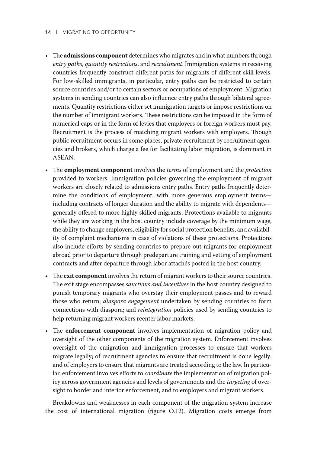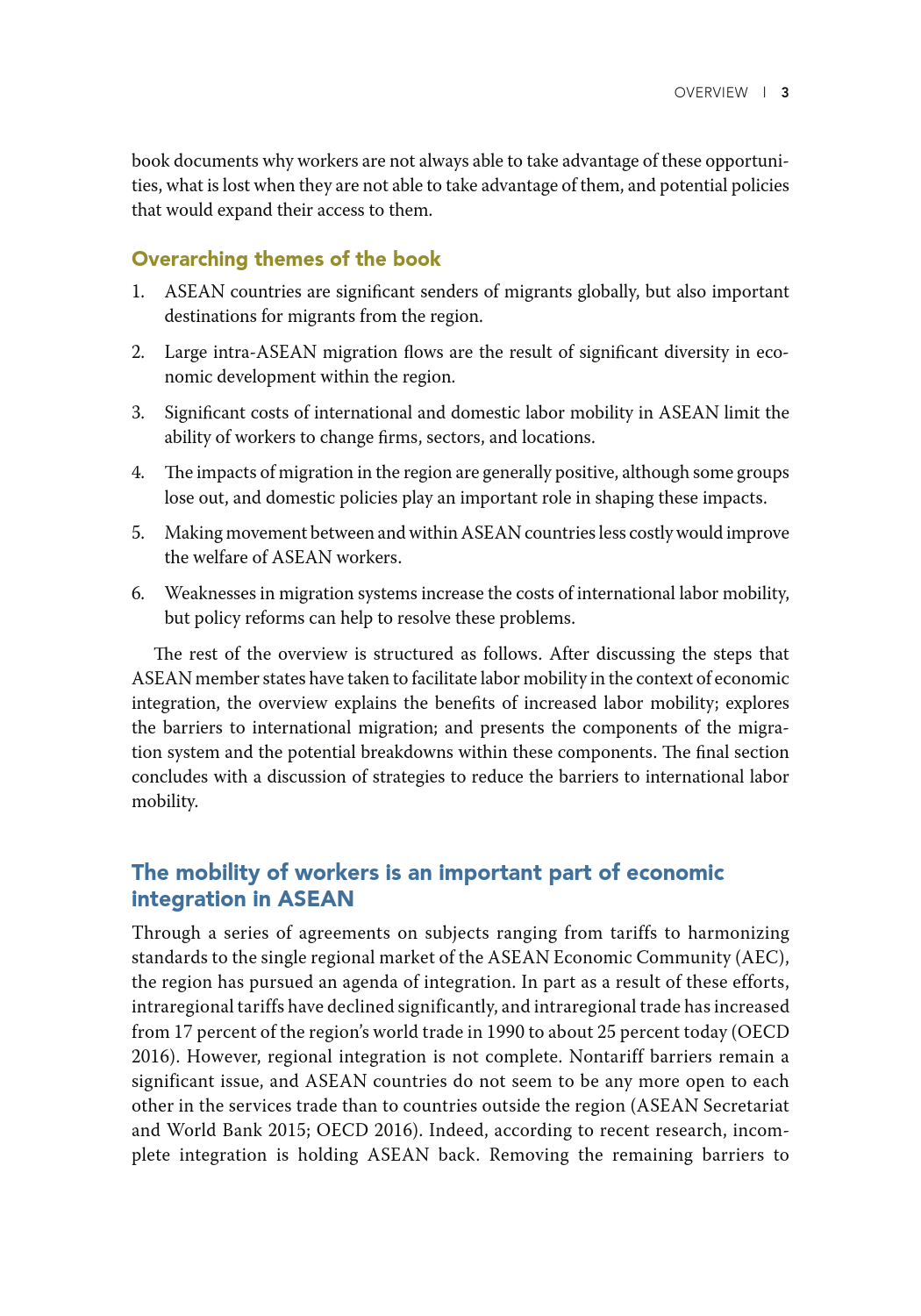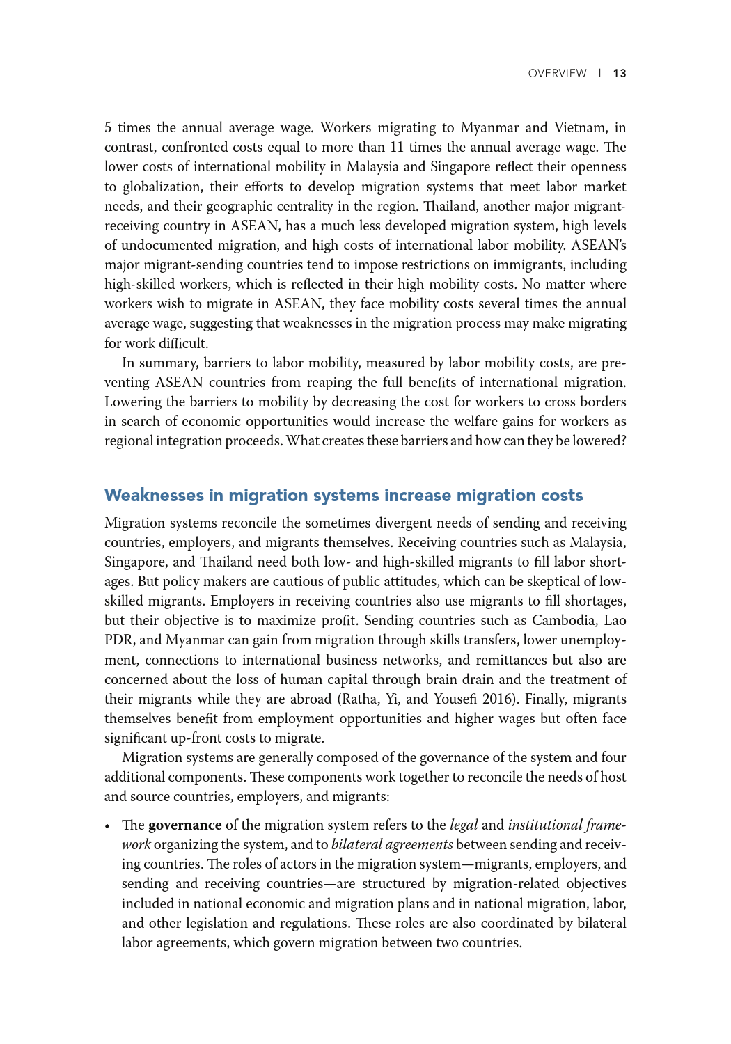 低技能且往往无证件的东盟移民迁移的目的是寻找经济机会,主要集中在建筑、种植和家政服务行业。薪酬较高的工作是有的,但工人并不一定有能力利用这些机会。东盟经济共同体已采取措施促进流动,但这些规定只涉及某些技术职业,如医生、牙医、护士、工程师、建筑师、会计和旅游专业人士,仅占该地区就业总数的5%。