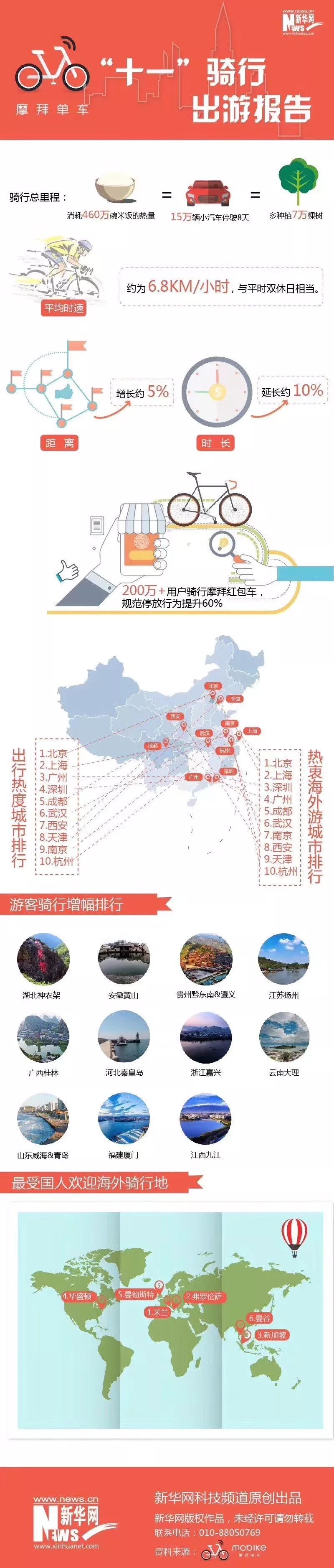 mobike:2017年十一骑行出游报告 摩拜单车发布《2017年十一骑行出游报告》,数据显示,国庆假期,全国用户骑行共享单车总里程比平时增长5%,相当于460万碗米饭的热量=15万辆小汽车停驶8天=多种7万棵树! 更多阅读:东南亚:2018年Q1应用类游戏类下载榜之新加坡世界各城市60平米房屋成本为什么早上8点出生的宝宝最多?艾漫数据:2019年第1季度明星商业价值系列榜单吃货自救指南:你可能去了个假的徐家汇HKTDC:中国婴童玩具市场的需求特征京东研究院:各地人最忍不了什么数据解读:偏爱顺风出行的人人人都是昏析师:关于缘分,这是我见过最感人的回答为什么许多美国人“逃离”大城市要不是中国人没假期,谁愿意挤在国庆出去玩香港国际秋季灯饰展2017问卷调查:家居照明产品前景乐观熬夜真的会变傻:睡眠不足,患阿尔茨海默病风险增高Nature:携带相同基因组的癌细胞或许会表现出不同的行为!自如研究院:2021年10城毕业生租房报告