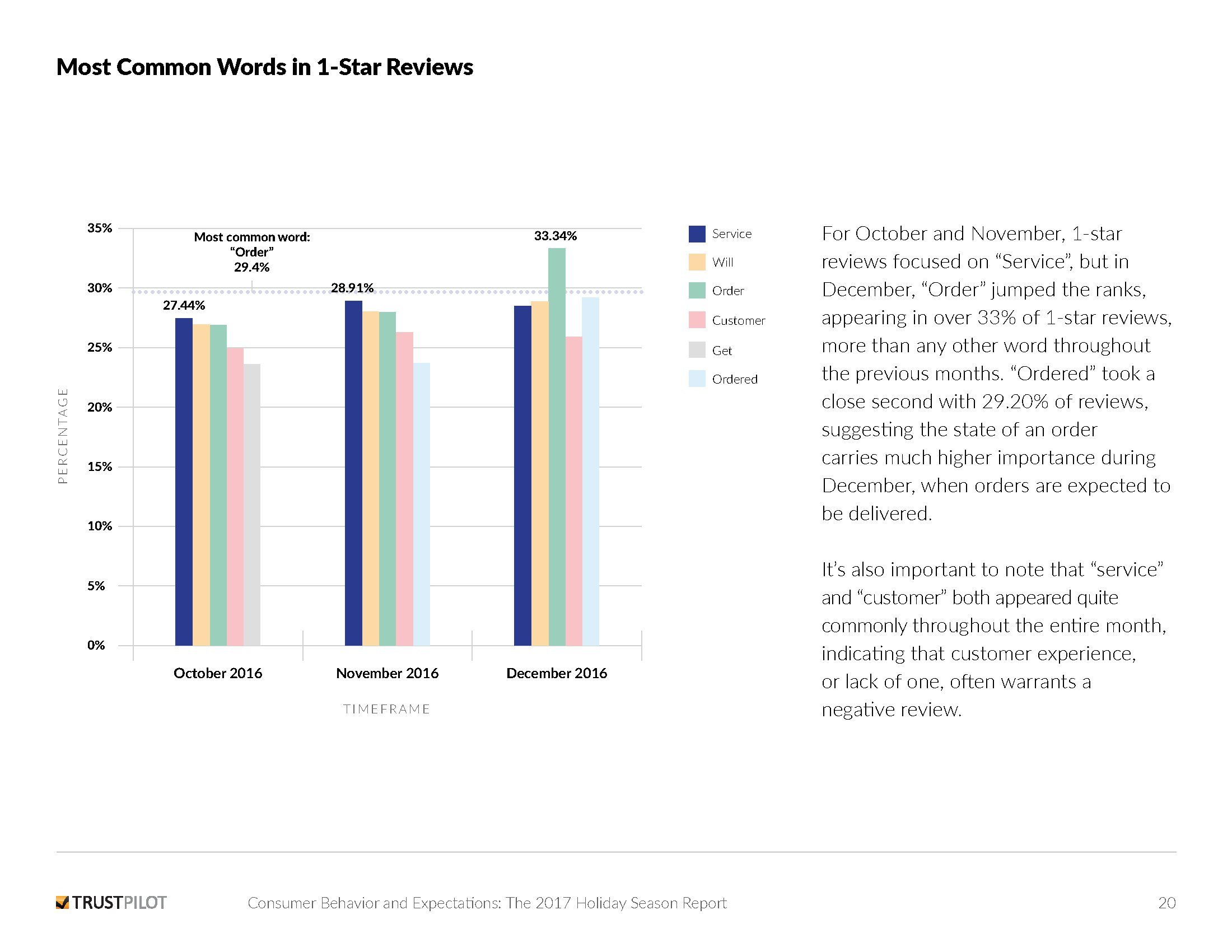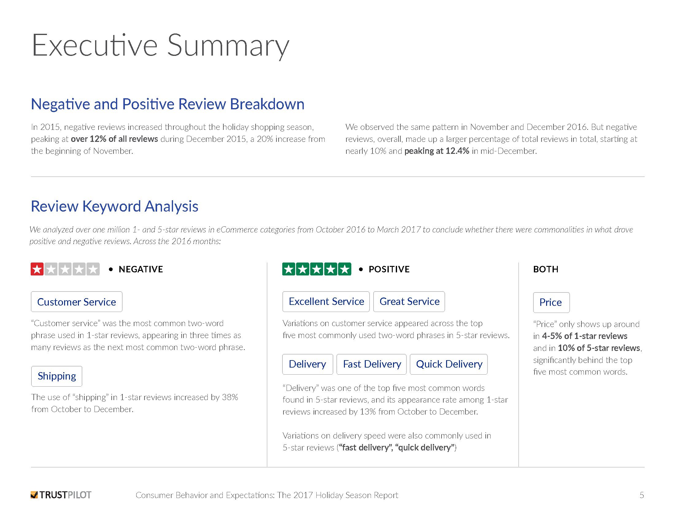 TRUSTPILOT总结了导致正面和负面评价的因素。
