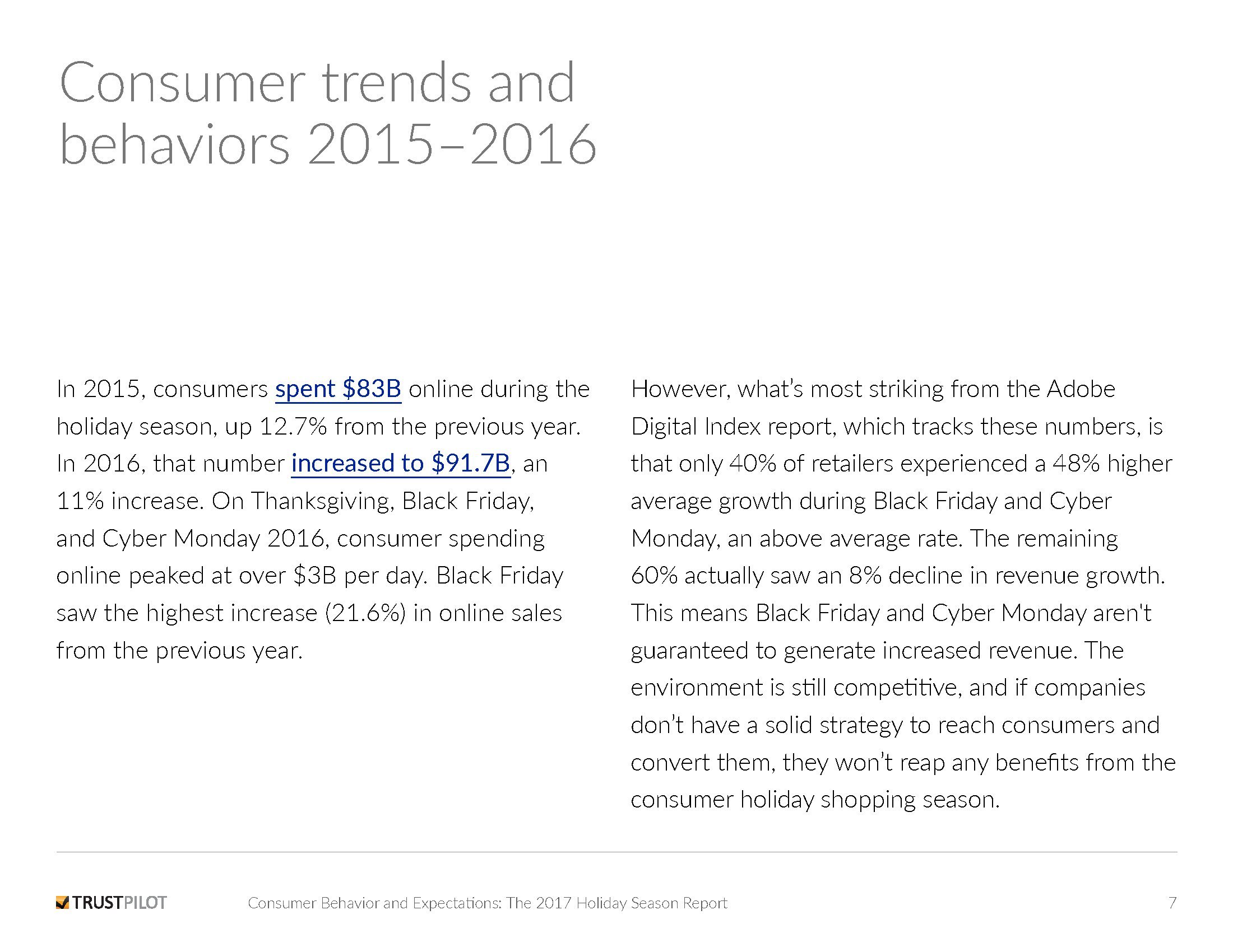 TRUSTPILOT发布了“消费者行为预期:2017年假日购物季报告”。
